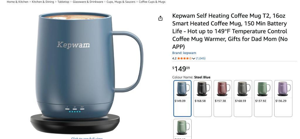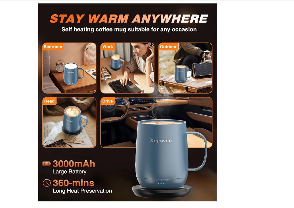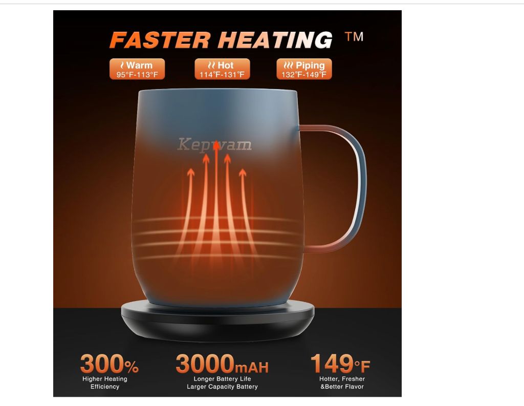 Kepwam Self Heating Coffee Mug T2, 16oz Smart Heated Coffee Mug, 150 Min Battery Life […]