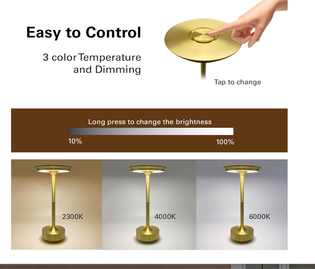 2 Pack Cordless Table Lamps Rechargeable, Portable Battery Operated Lamp, Stepless Dimming LED Table Light with Memory Function,