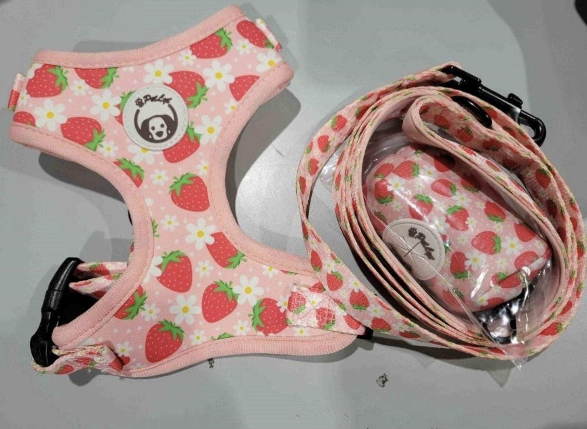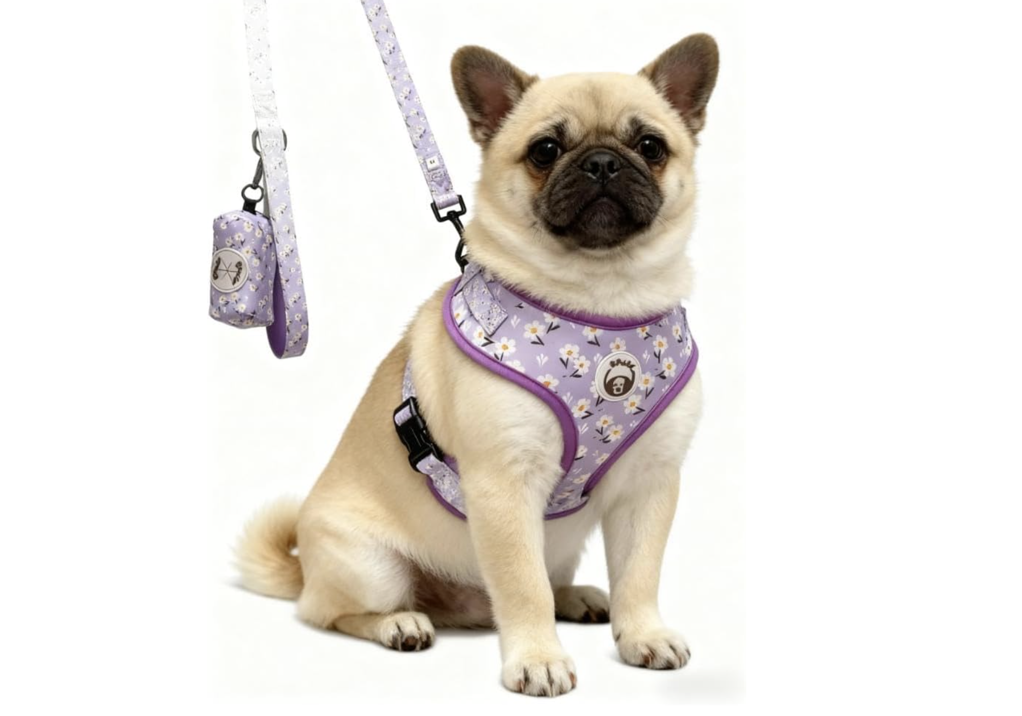 3-in-1 Pet Harness Set (Harness + Leash + Poop Bag), Breathable Cat Harness, Adjustable Step-in Design for Dog Harness. (White Chrysanthermum, Size XS for Cat and Tiny Dog with Neck Girth of 29-36cm)