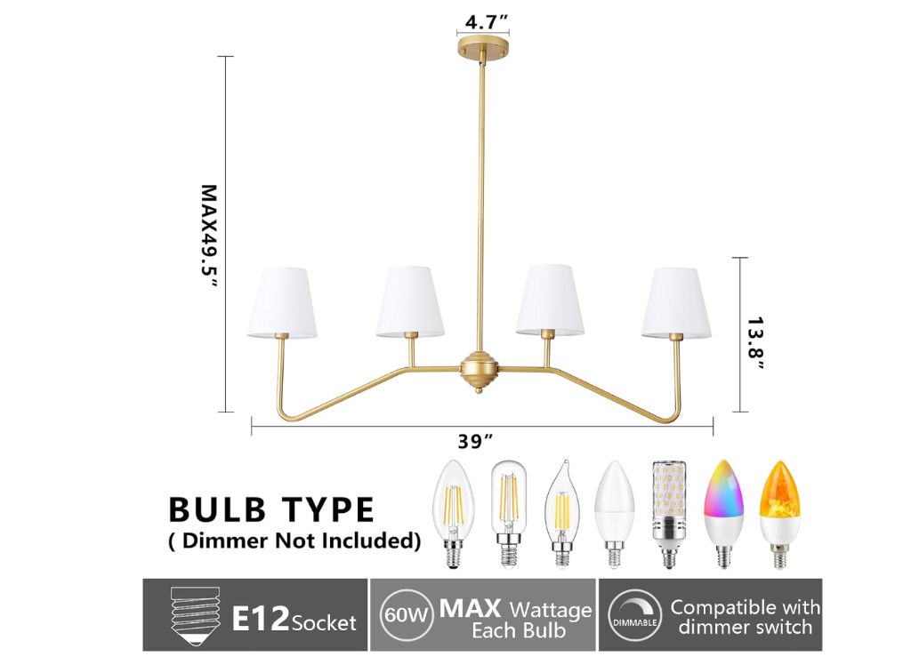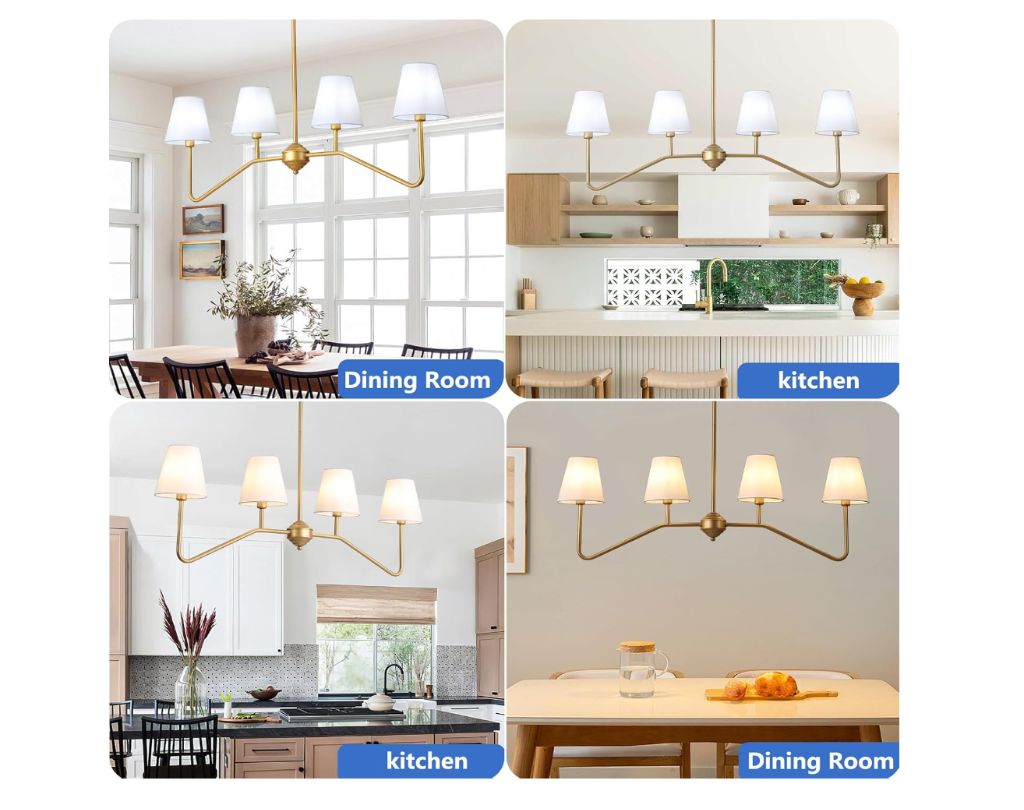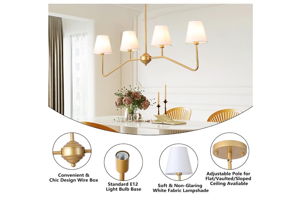 9MMML 39″ 4 Arms Dining Room Light, Gold Body+ Fabric Shade Chandelier,Modern Pendant Light for Kitchen Island Foyer Living Room, E12 Bulb.