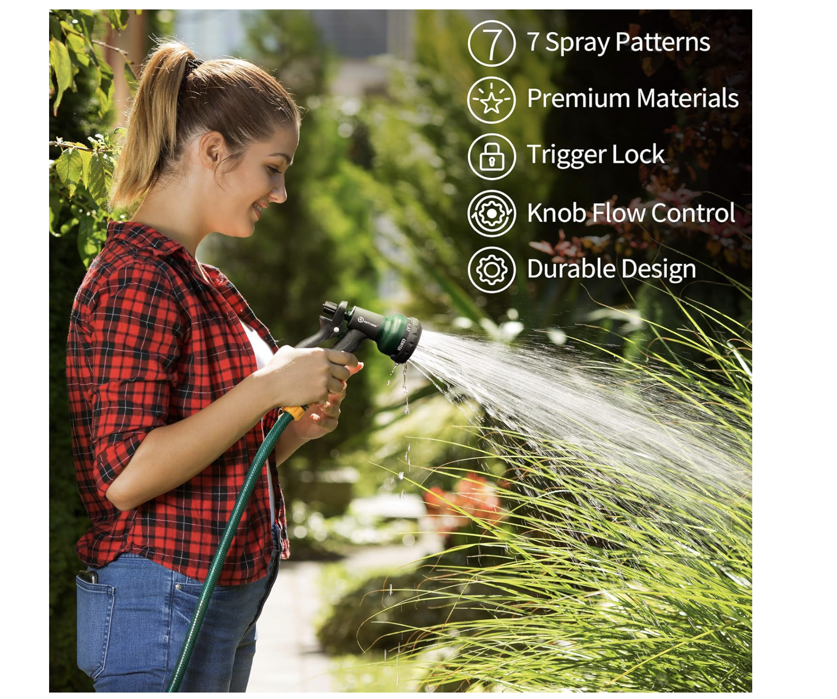 AUTOMAN-Garden-Hose-Nozzle,ABS Water Spray Nozzle with Heavy Duty 7 Adjustable Watering Patterns,Slip Resistant for Watering Plants,Lawn& Garden,Washing Cars,Cleaning, & Outdoor Fun.