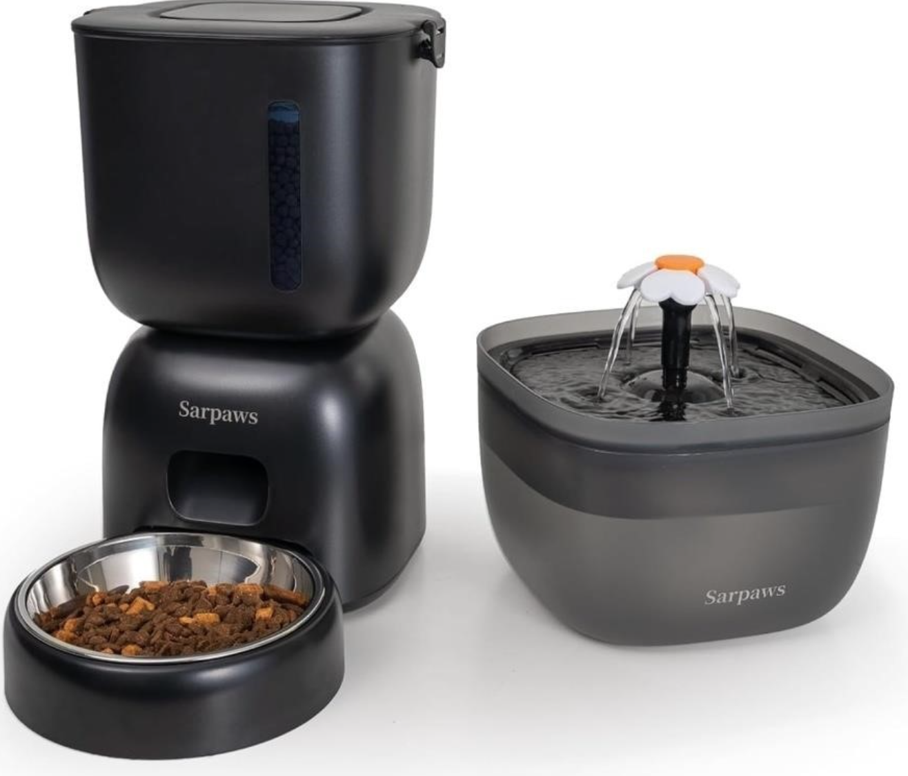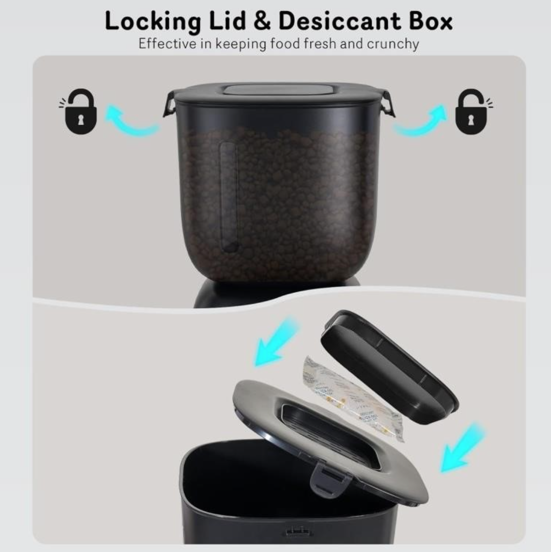 Automatic Cat Feeder and Water Dispenser FW1, Wire or Battery Cat Food Dispenser Timer Pet Feeder – Locking Lid, Desiccant Bag, Programmable Portion Control, 4 Daily Meals, 10s Voice Recorder-Black
