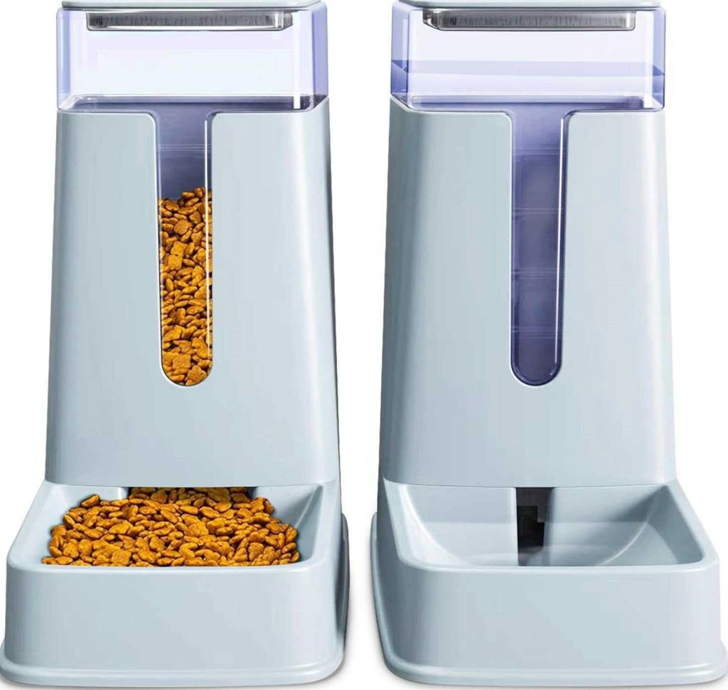 Automatic Pet Feeder Small&Medium Pets Automatic Food Feeder and Waterer Set 3.8L, Travel Supply Feeder and Water Dispenser for Dogs Cats Pets (Light Gray)