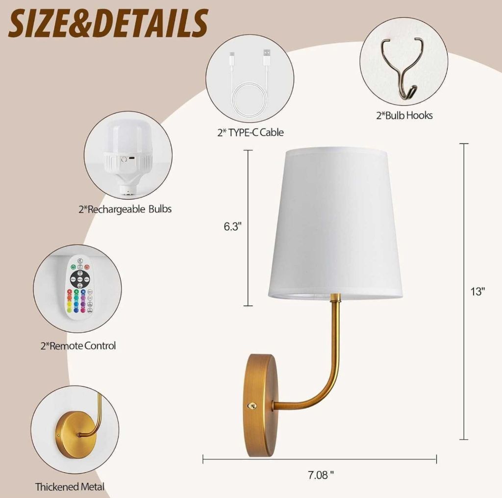 Battery Operated Wall Sconce Set of 2, Rechargeable Wall Lights with 5200mAh Dimmable Detachable Bulbs […]