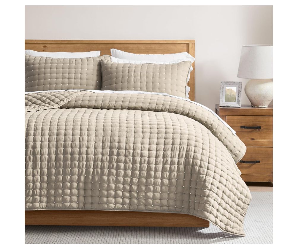 WDCOZY Beige King Size Quilt Bedding Sets with 2 Pillows