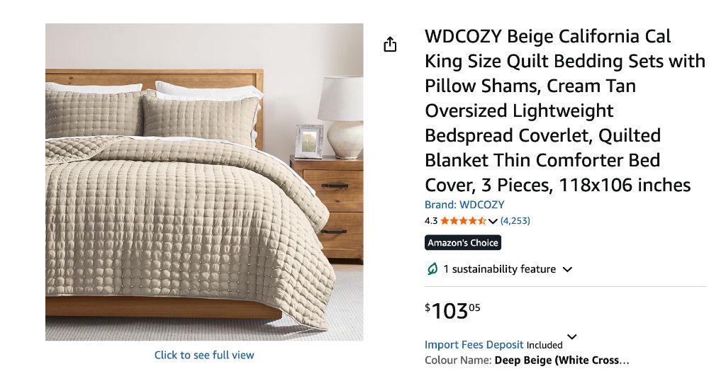 WDCOZY Beige King Size Quilt Bedding Sets with 2 PillowsSize:California King