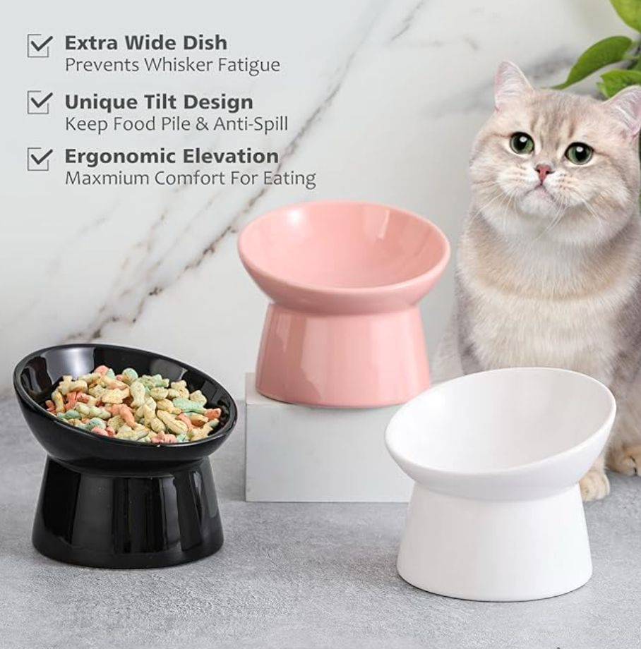 Black Small Ceramic Raised Cat Bowls, Tilted Elevated Food or Water Bowls, Stress Free, Backflow […]