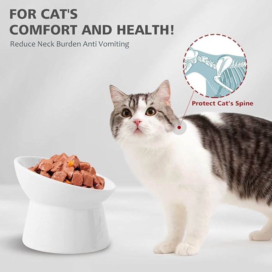 Tilted Elevated Cat Bowls Anti Vomit – 6.1 inch Extra Wide Cat Feeding Bowls Whisker Friendly – Stress Free Shallow Cat Bowl for Dry Wet Food – Dishwasher Safe – 9.5 oz