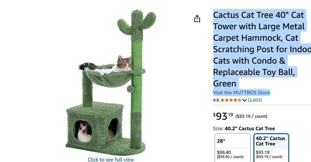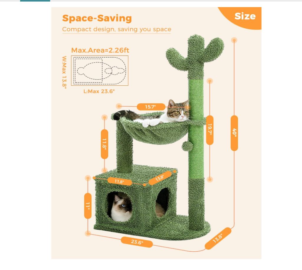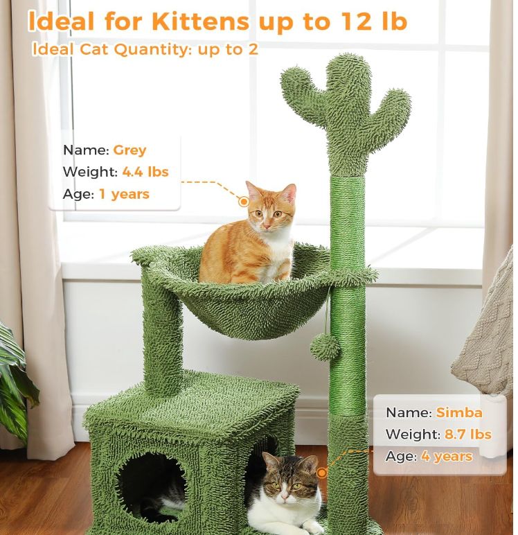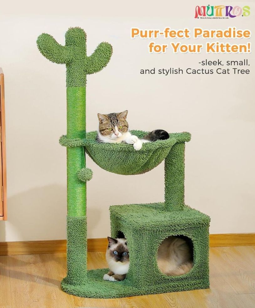 Cactus Cat Tree 40″ Cat Tower, GreenCactus Cat Tree 40″ Cat Tower with Large Metal Carpet Hammock, Cat Scratching Post for Indoor Cats with Condo & Replaceable Toy Ball, GreenVisit the MUTTROS Store