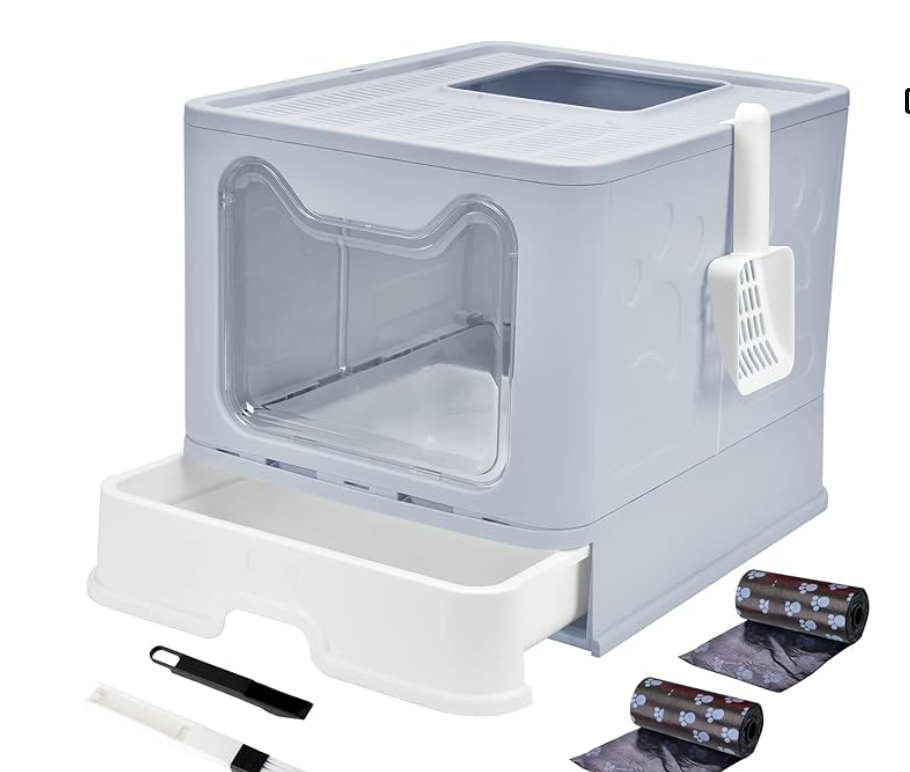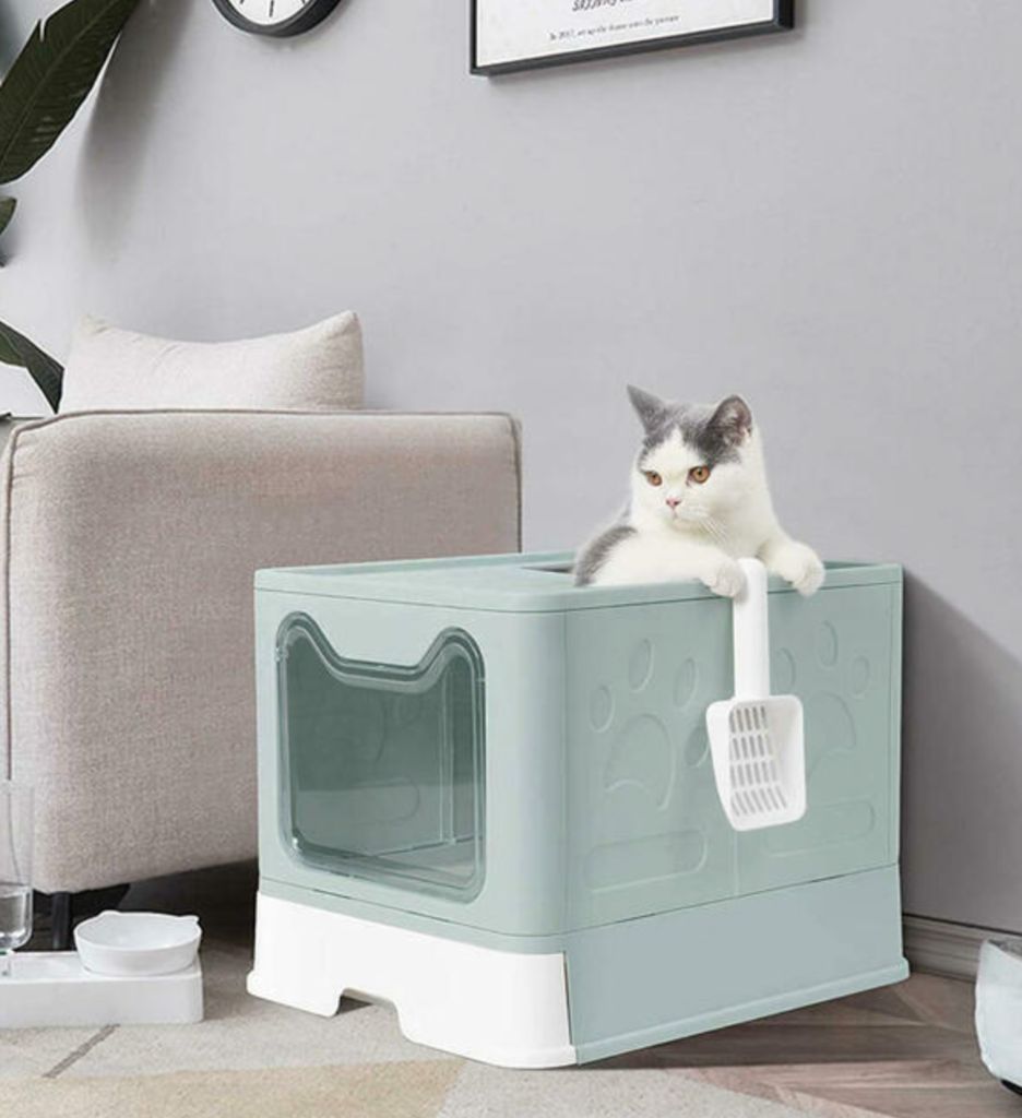 NEW in boxPanghuhu88 Foldable Cat Litter Box with Lid, Large Top Entry Cat Toilet, Enclosed Cat Potty Include Cat Litter Scoop, Drawer Type Easy Clean Cat Litter Pan(Green)