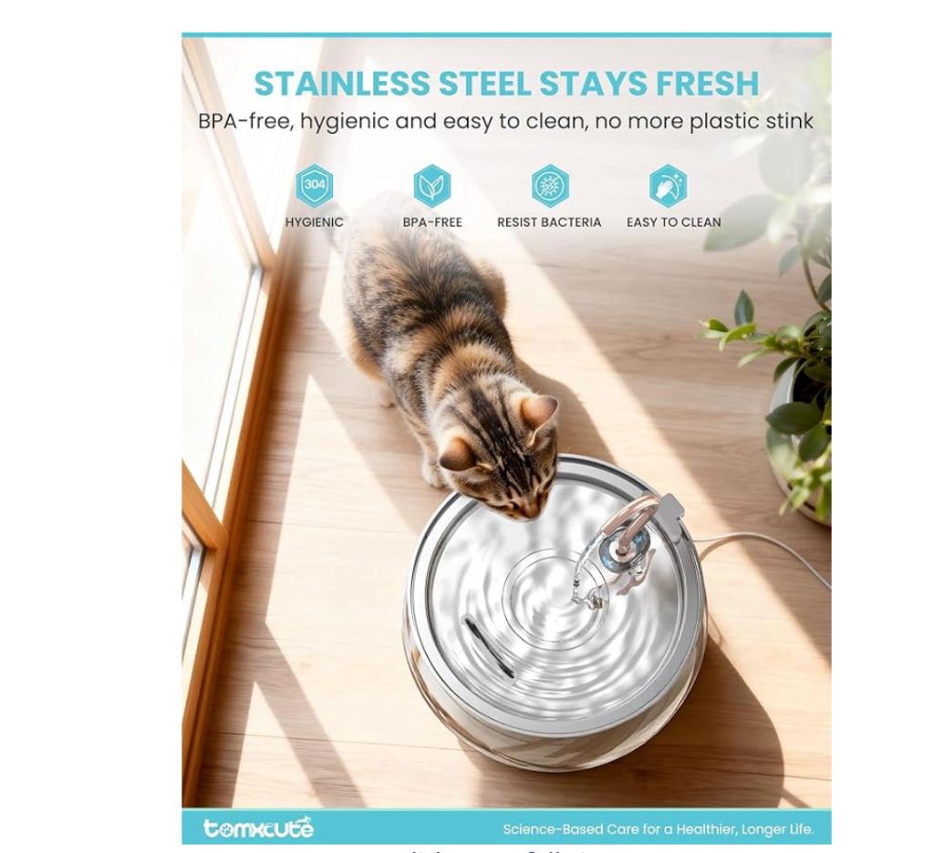 Tomxcute Cat Water Fountain, 2.0L Automatic Stainless Steel Pet Fountain Dog Water Dispenser, Ultra-Quiet Pump […]