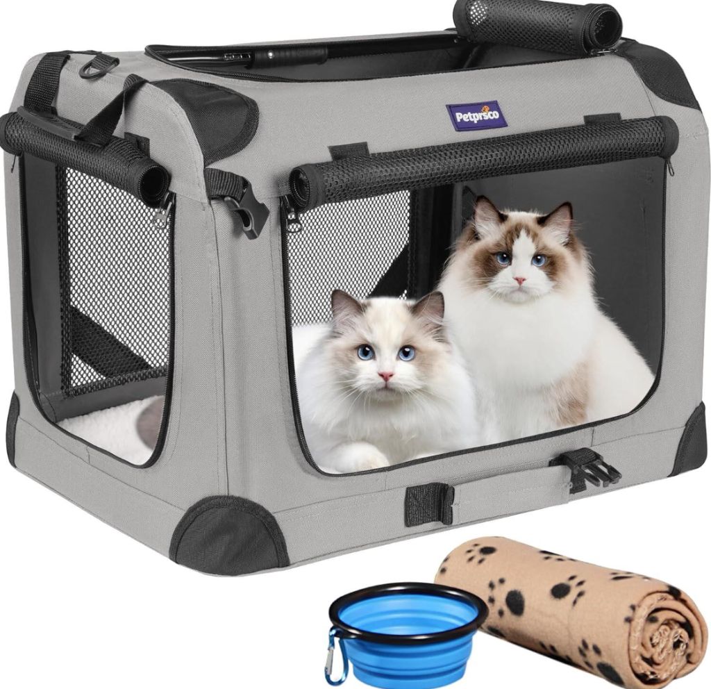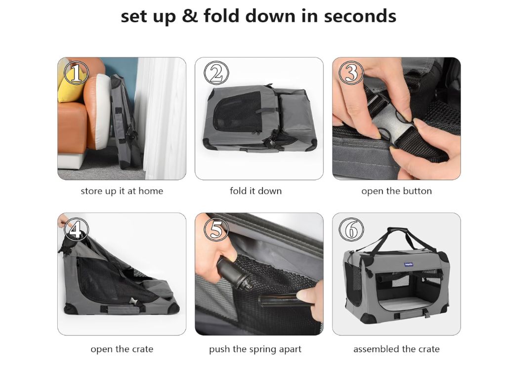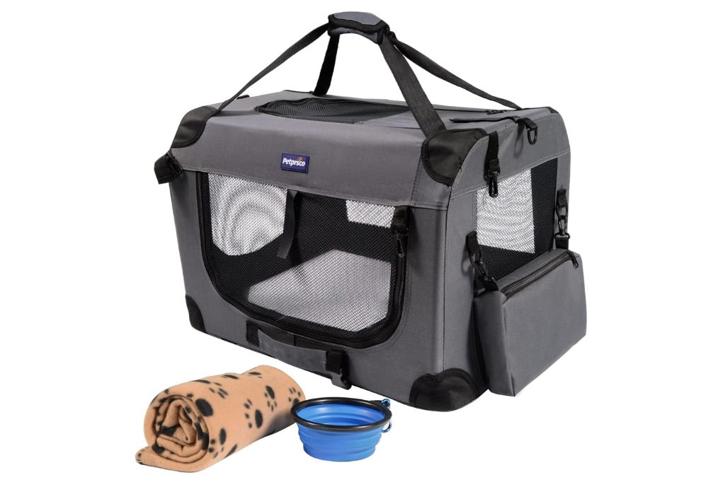 Petprsco Collapsible Dog Crate 24x17x17 -grayPetprsco Portable Collapsible Dog Crate, Travel Dog Crate 24x17x17 with Soft Warm Blanket and Foldable Bowl for Large Cats & Small Dogs Indoor and Outdoor