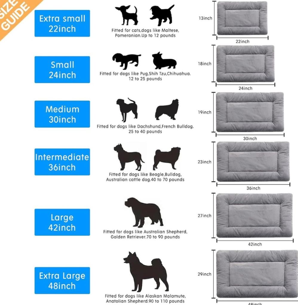 Ideal dog pad for wire dog crates.This pad measures approximately 24×18 Fit for dogs weighing 15 to 25lbs