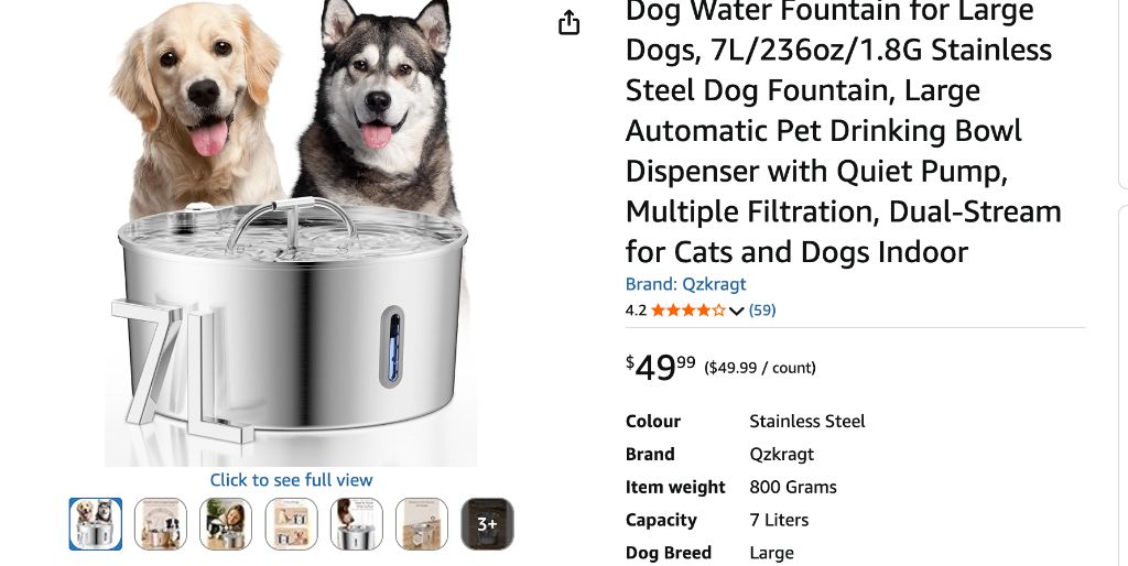 Dog Water Fountain for Large Dogs, 7L- new