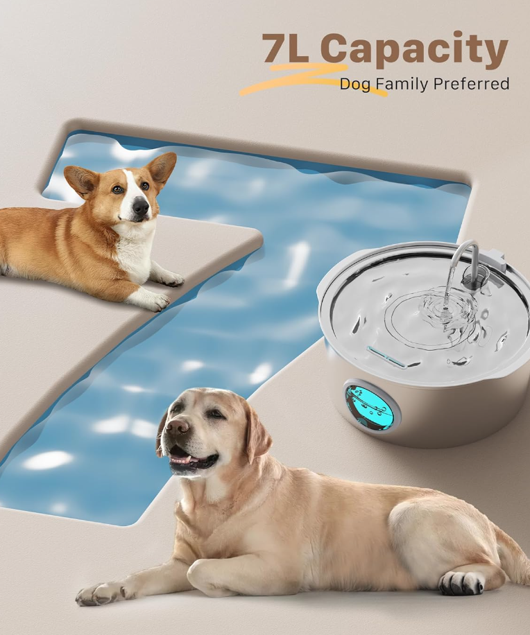 NEW in box Dog Water Fountain Stainless Steel: 7L/236oz/1.8G Pet Water Fountain Large Breed- Super Quiet Dog Fountain Water Bowl – Metal Water Fountain Indoor Puppy- for Big Dogs Cats & Multi-Pet HomeBrand: GROOKPET