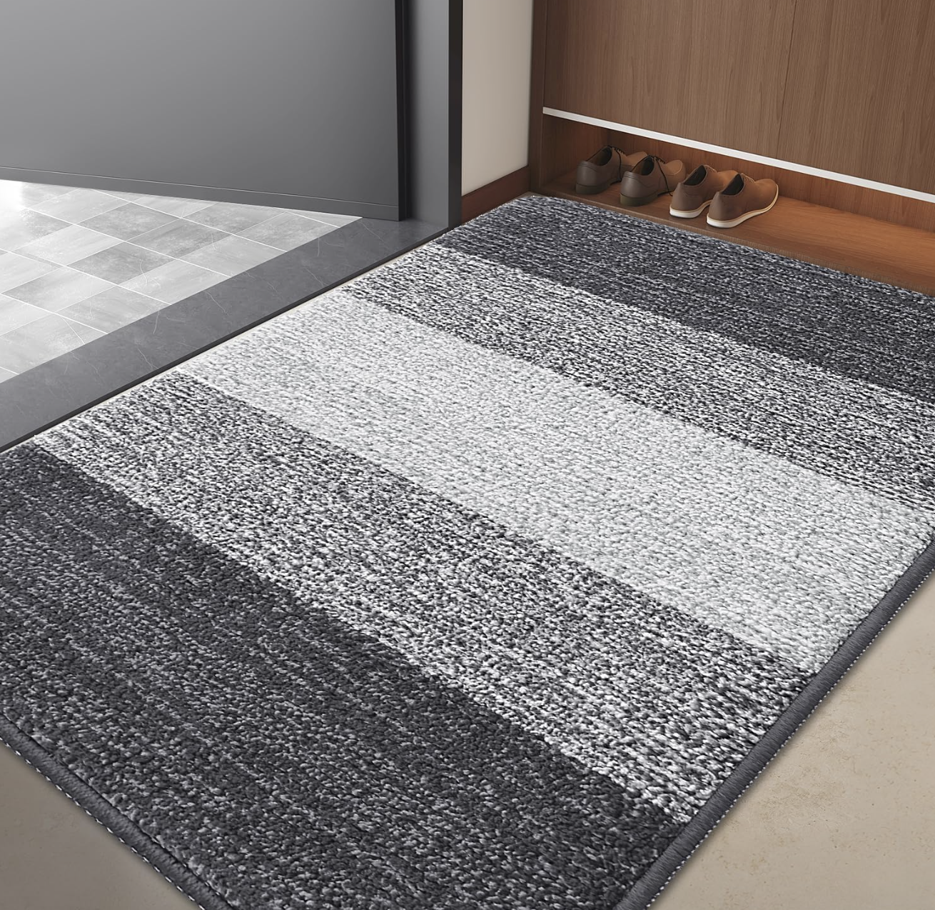 Grandaily Indoor Doormat, 32″ x 48″ Non-Slip Mud Trapper Absorbent Front Door Mats, Washable Striped Inside Entryway Mat