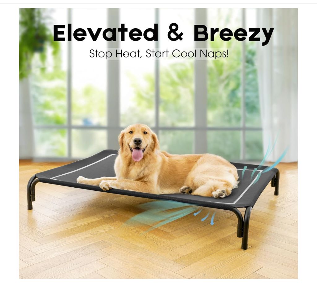 Dopedio Elevated Outdoor Dog Bed, Raised Dog Cot, Large Size, Black |