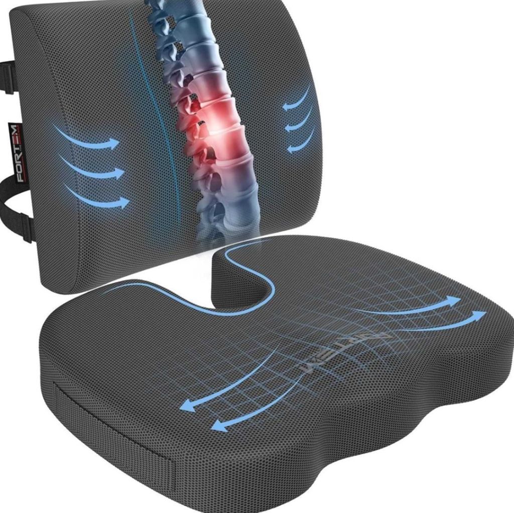 FORTEM Seat Cushion and Lumbar Support for Office Chair, Desk Chair Cushion, Non Slip Sitting and Back Pillow for Gaming, Car Seat, Memory Foam Sciatica and Tailbone Support, Washable Covers
