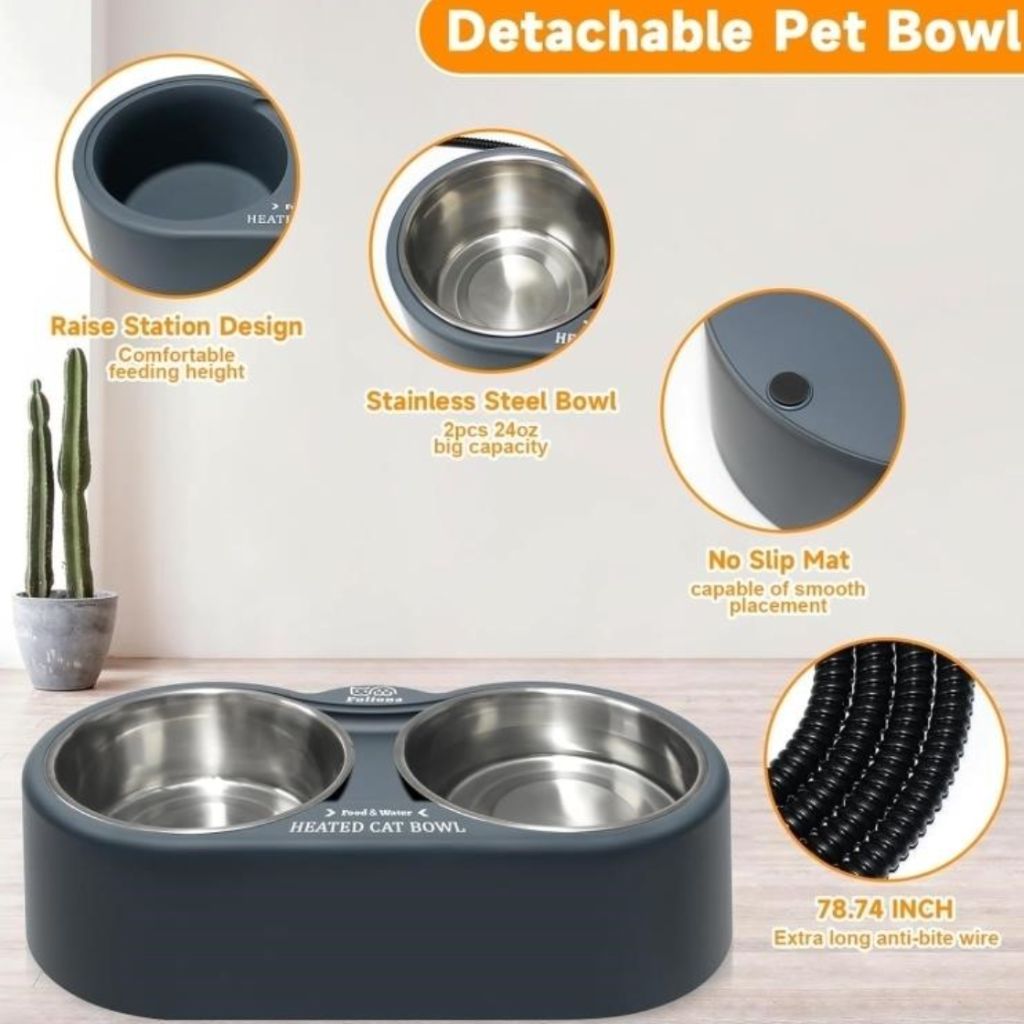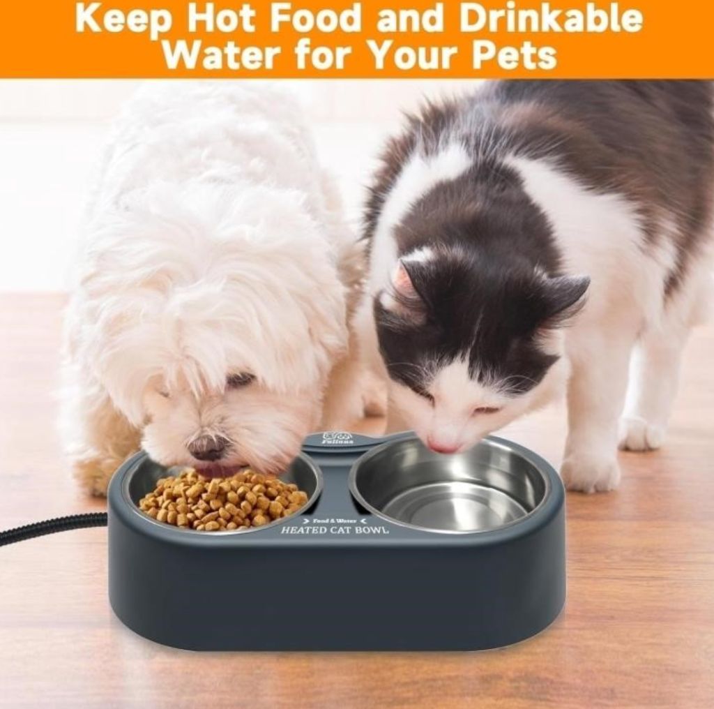 Heated Cat Bowl, Outdoor Heated Pet Bowl with Double Stainless Steel Bowl 24 OZ, Water Food Bowl for Cat Pet, Thermal Pet Bowl Provide Drinkable Water and Hot Food in Winter
