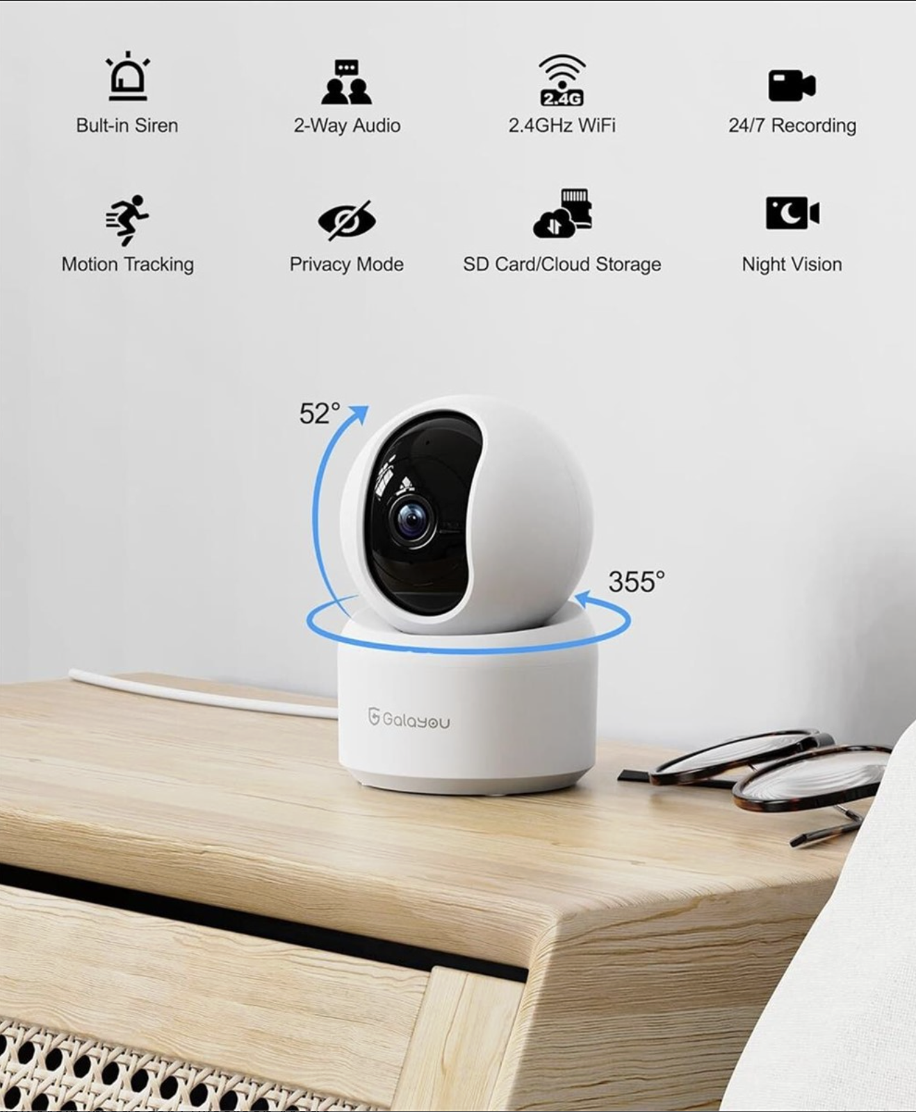 GALAYOU 2K Indoor Security Camera, Pet Camera, 360 Degree WiFi Home Security Camera for Baby/Elder/Nanny/Dog with Night Vision, Siren, 24/7 SD Card Storage, Works with Alexa and Google Assistant G2