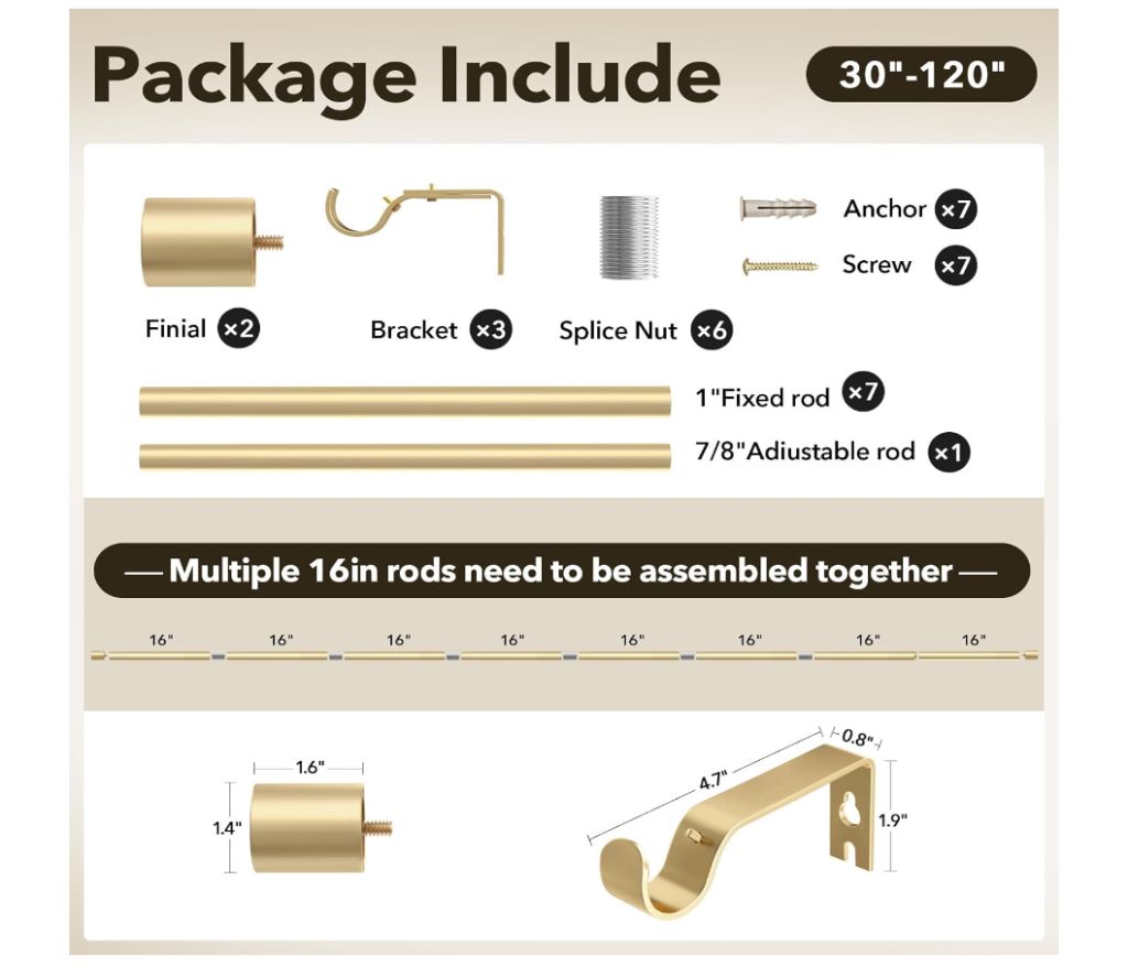 Heavy Duty Curtain Rods for Windows 66 to 120 Inch