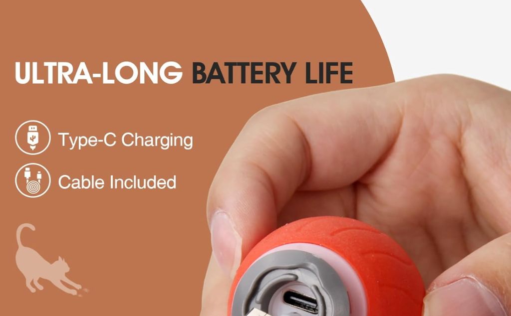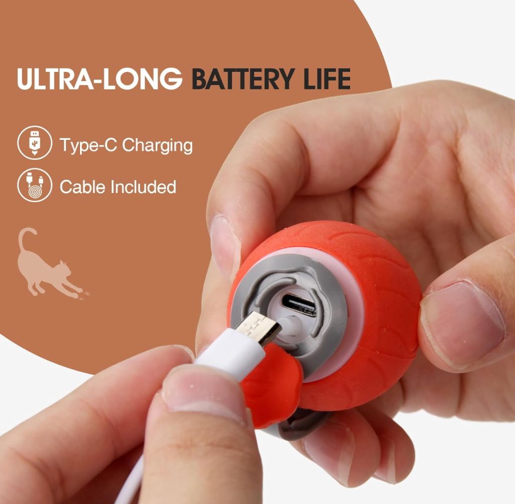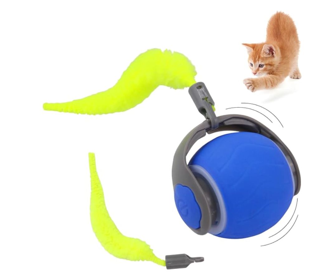 Moving Ball Cat Toys with 2 Replacement Feather Tail, Smart USB Rechargeable Interactive Ball Toy for Indoor Cats, Fast Kitten Rolling Ball Move On Carpet (Blue)