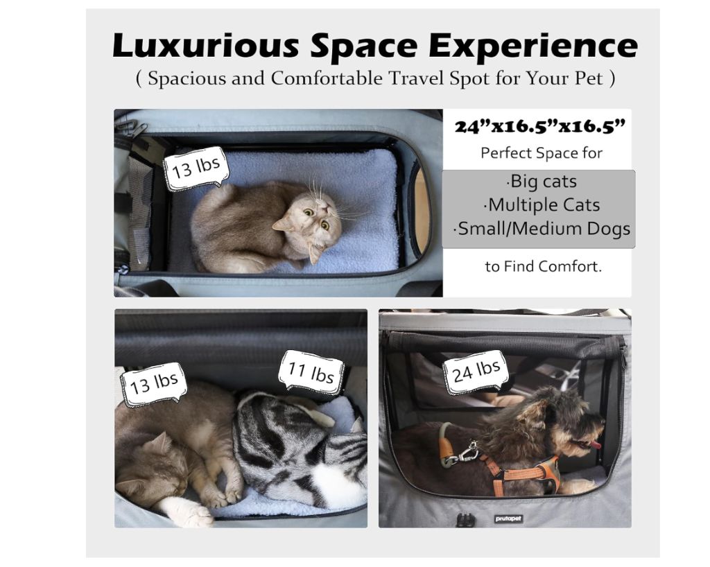 Prutapet Large Cat Carrier 24″x16.5″x16.5″ Portable Dog Crate for Small Medium Dogs Collapsible Traveling Pet Crate with Collapsible BowlSize:24″x16.5″x16.5″ (No Litter Box)
