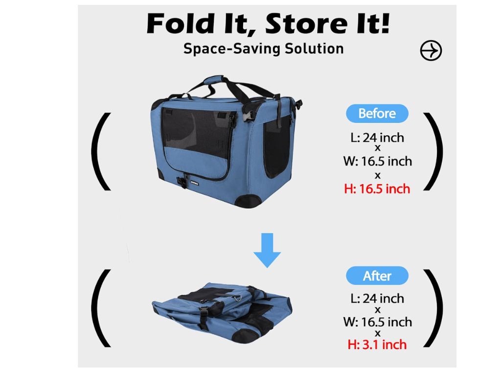 Prutapet Large Cat Carrier 24″x16.5″x16.5″ Portable Dog Crate for Small Medium Dogs Collapsible Traveling Pet Crate with Collapsible Bowl
