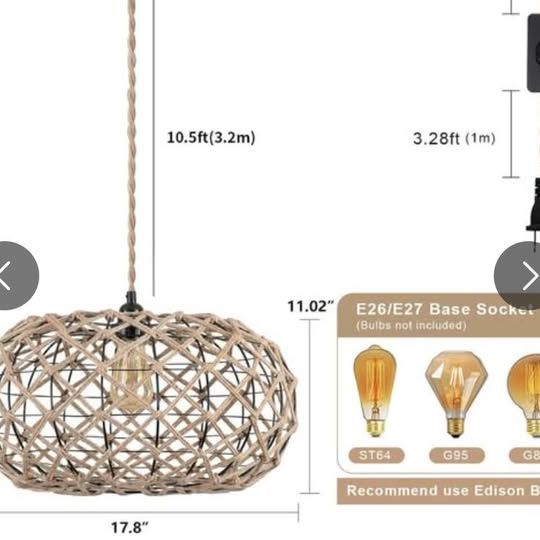 Light fixture woven pendant light fixture 17.8 inch or plug in
