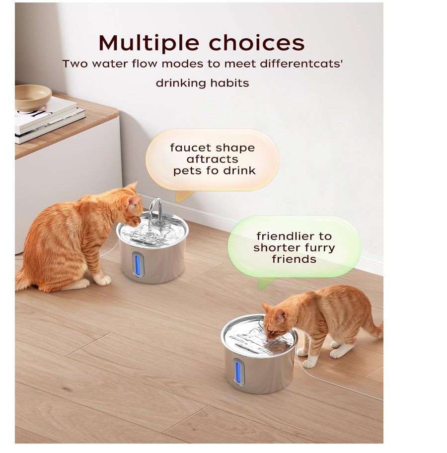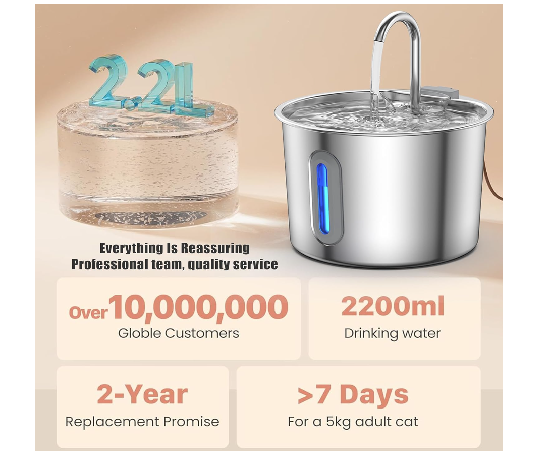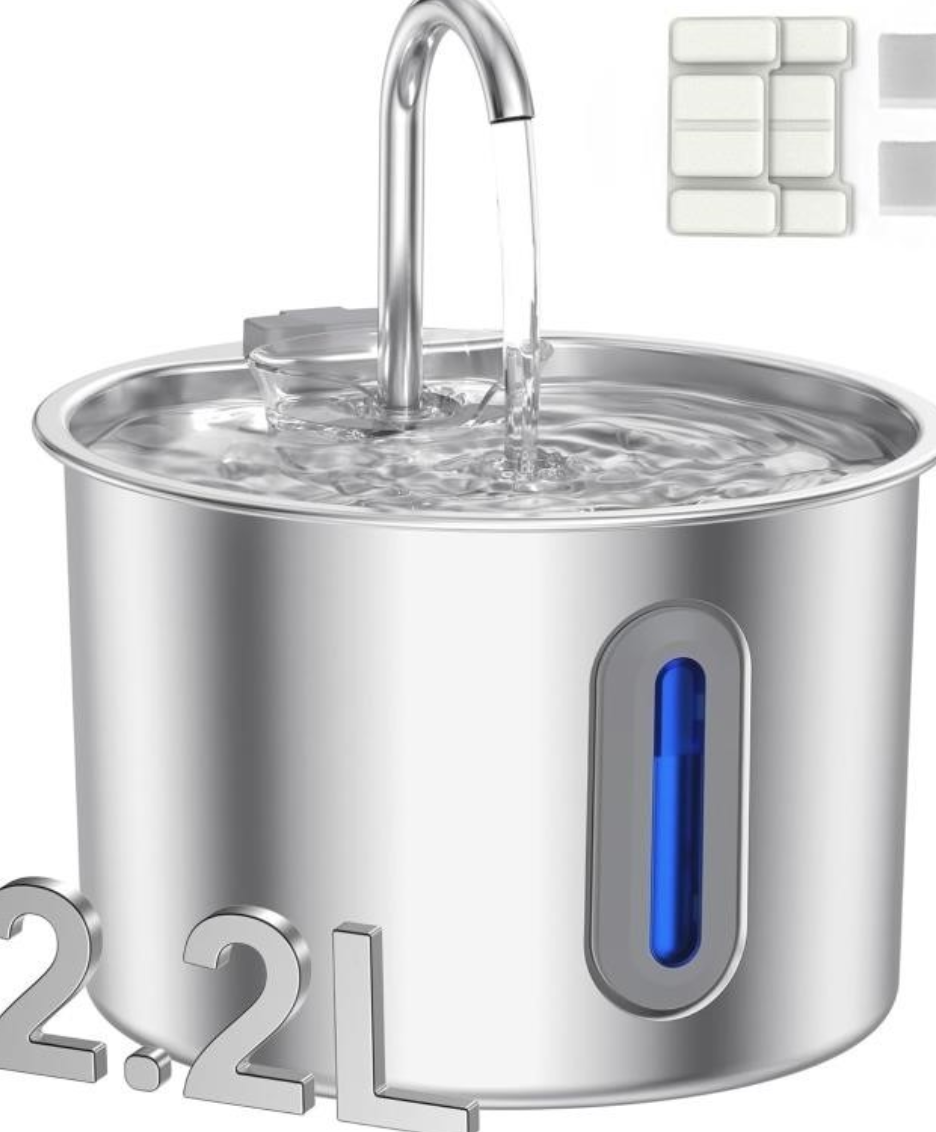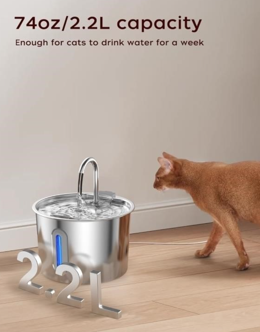 New- Cat Water Fountain,Stainless Steel Pet Water Dispenser 74oz/2.2L – new in box