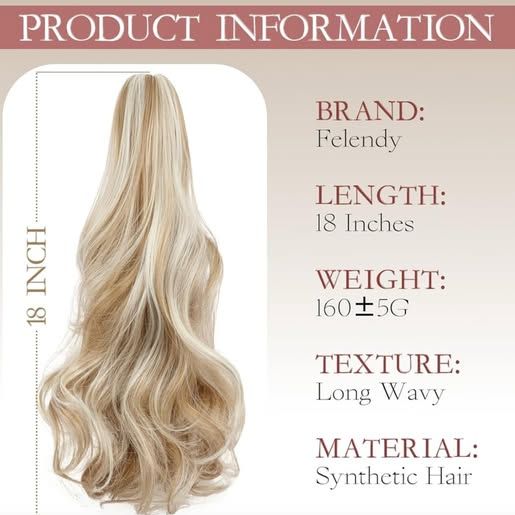 new –Felendy 18″ 20″ Ponytail Extension Claw Clip in Curly Wavy Straight Pony Hair Extensions Jaw Clip on Pony Tail Hairpiece Synthetic for Women,