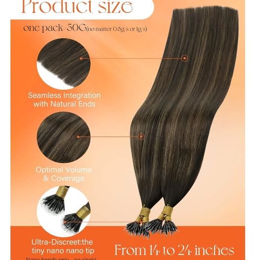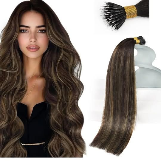 NEW- Sunny Hair Nano Beads Hair Dark Brown Balayage Chestnut Brown 24inch Virgenhair