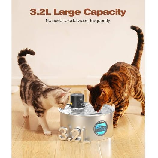 NEW- never used Toonioos Cat Water Fountain Wireless CordlessWireless Cat Water Fountain: Cat Fountain Stainless Steel – 3.2L Battery Operated Water Fountain Indoor Cats – Cordless Pet Fountains for Drinking for Cats and Small Dogs