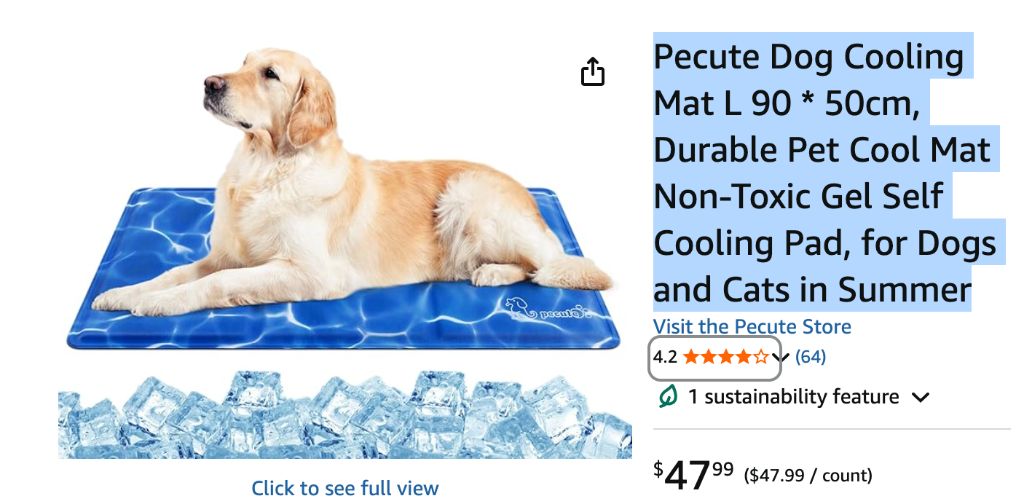 Pecute Dog Cooling Mat L 90 * 50cm, Durable Pet Cool Mat Non-Toxic Gel Self […]