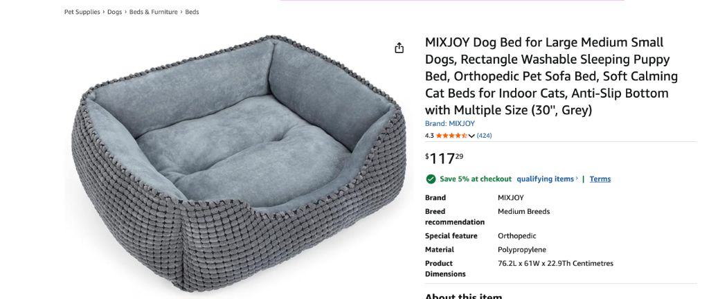 MIXJOY Dog Bed for Large Medium Small Dogs, Rectangle Washable Sleeping Puppy Bed, Orthopedic Pet […]
