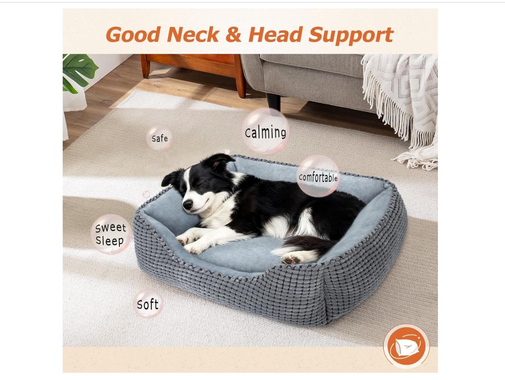 MIXJOY Dog Bed for Large Medium Small Dogs, Rectangle Washable Sleeping Puppy Bed, Orthopedic Pet Sofa Bed, Soft Calming Cat Beds for Indoor Cats, Anti-Slip 30 lbs M is 25’’x 21’’x 8’’