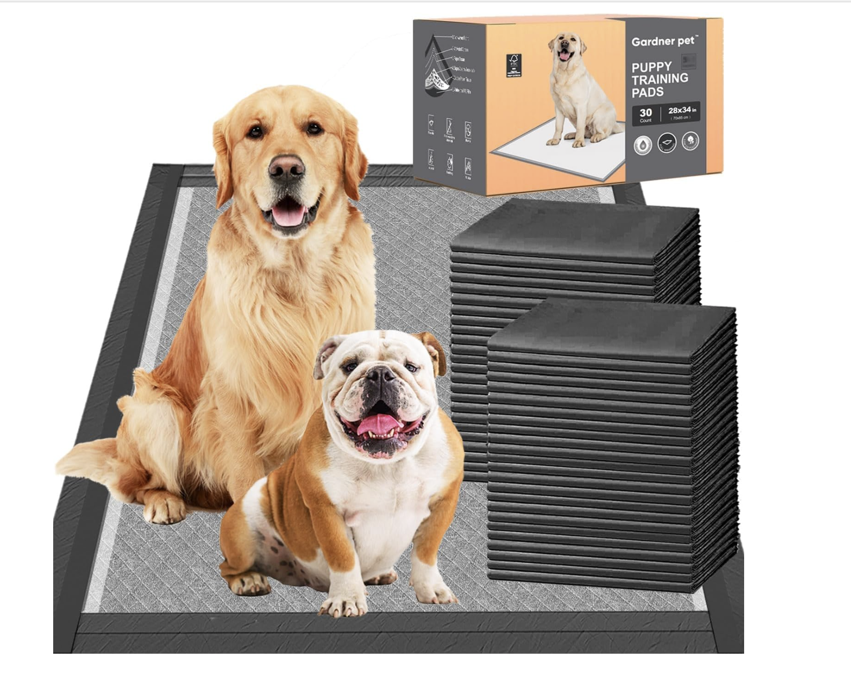 New sealedGardner Pet Charcoal Puppy Pads Dog Pee Pads Odor-Control & Leak-Proof Edge-Wrapping Thicken Potty Pad for Dogs, Cats, Rabbits (30 Pieces), 28×34 Inches, Extra Large