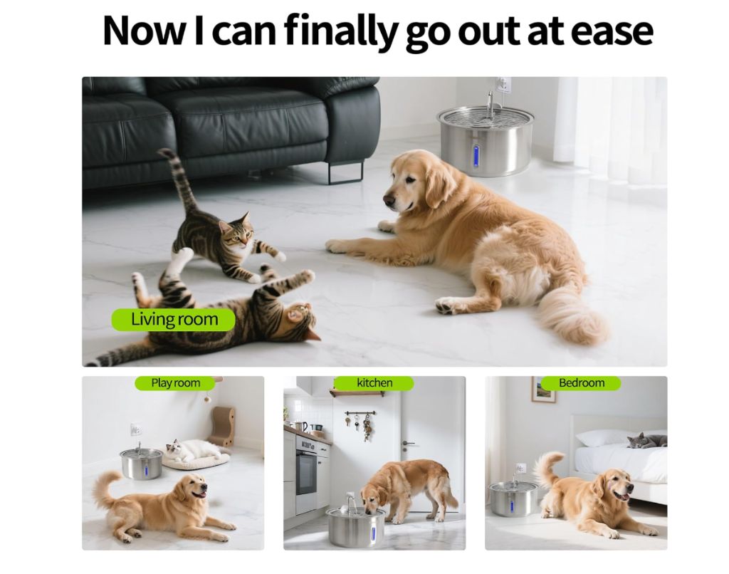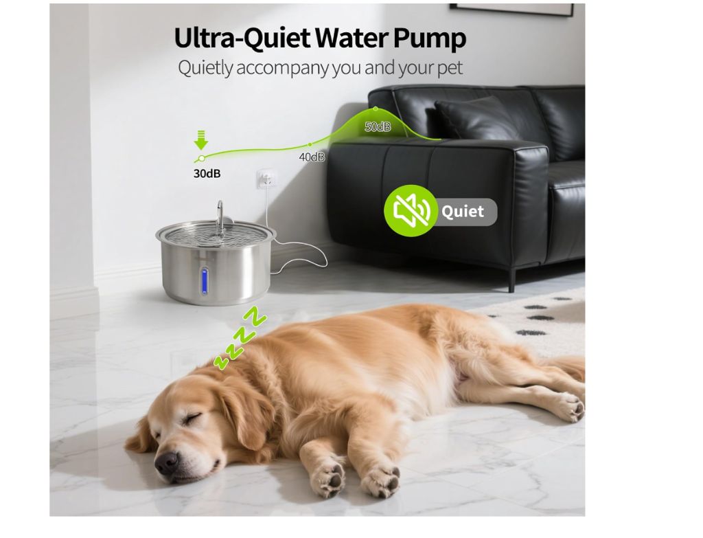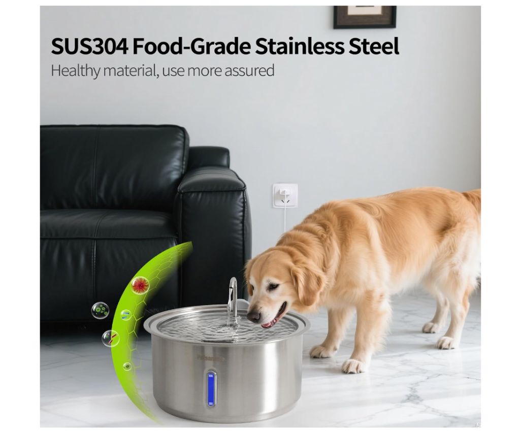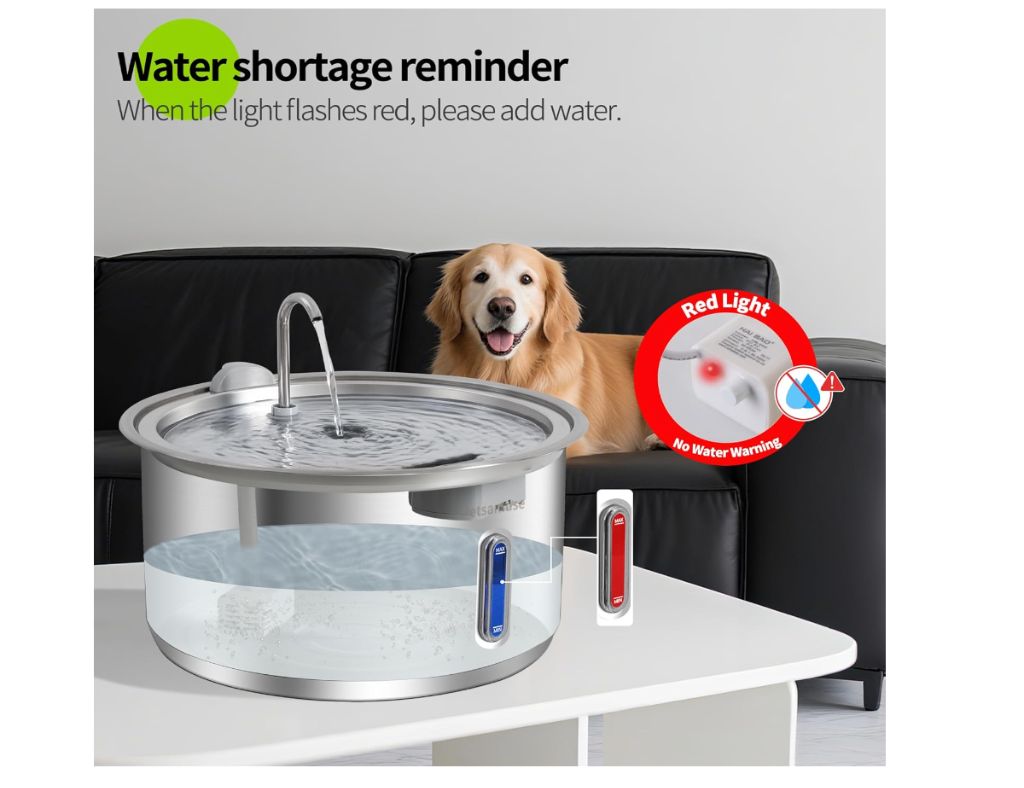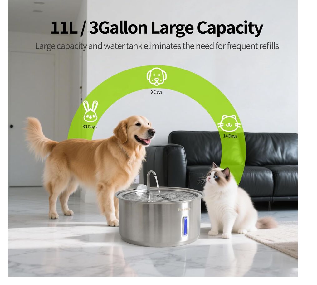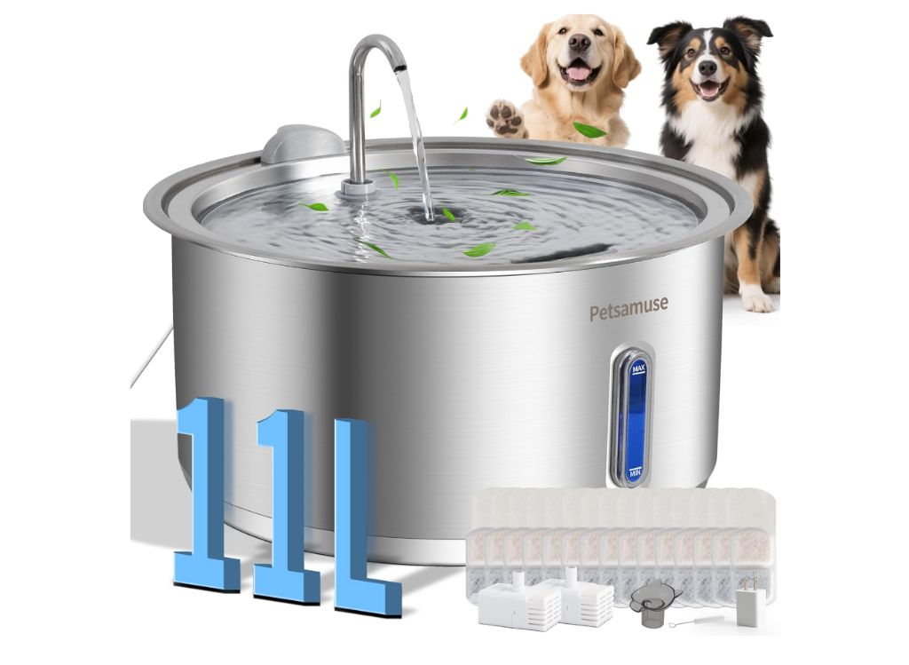 Large Dog Water Fountain, Petsamuse 11L/2.8Gal Automatic Circulating Stainless Steel Water Bowl Dispenser with 8 […]