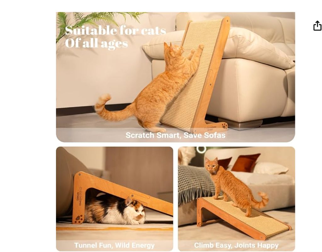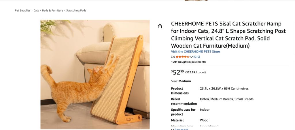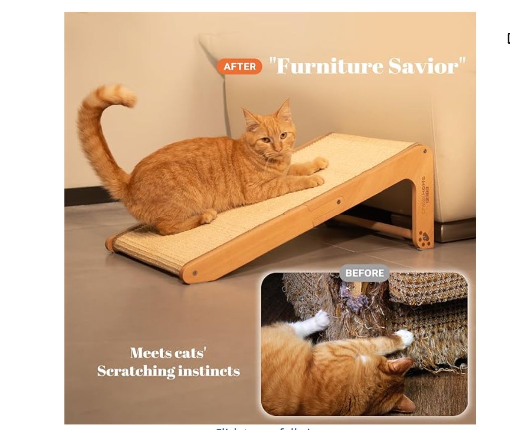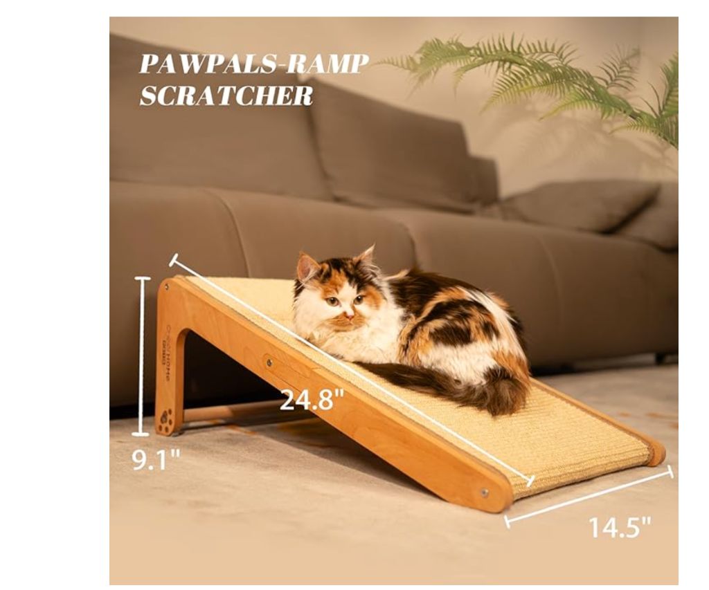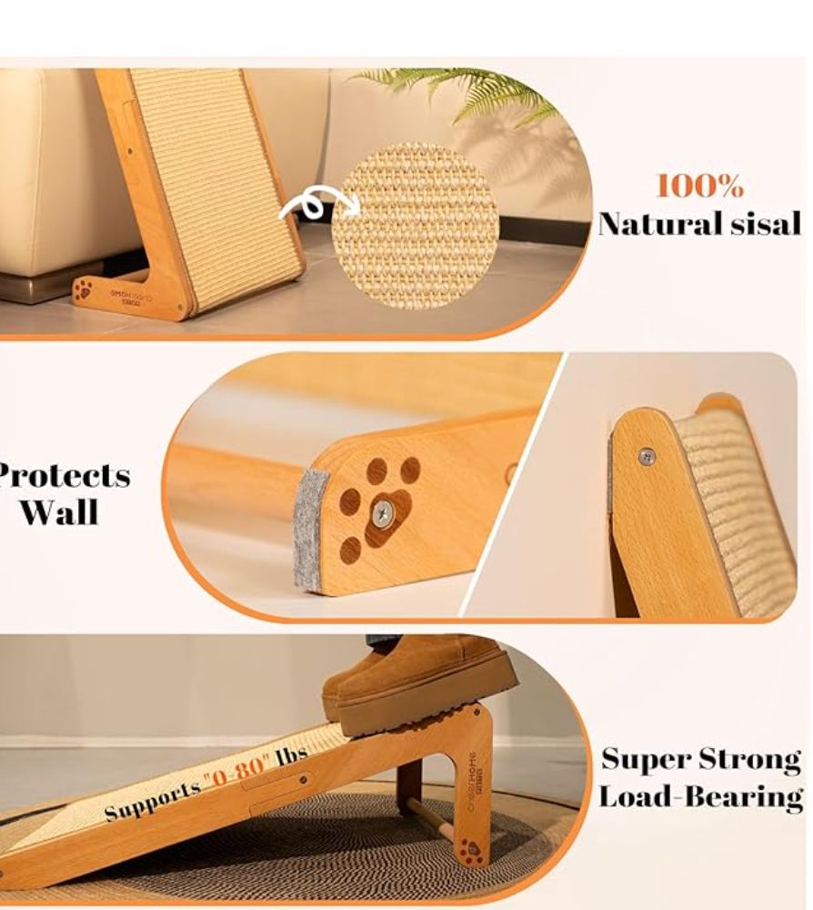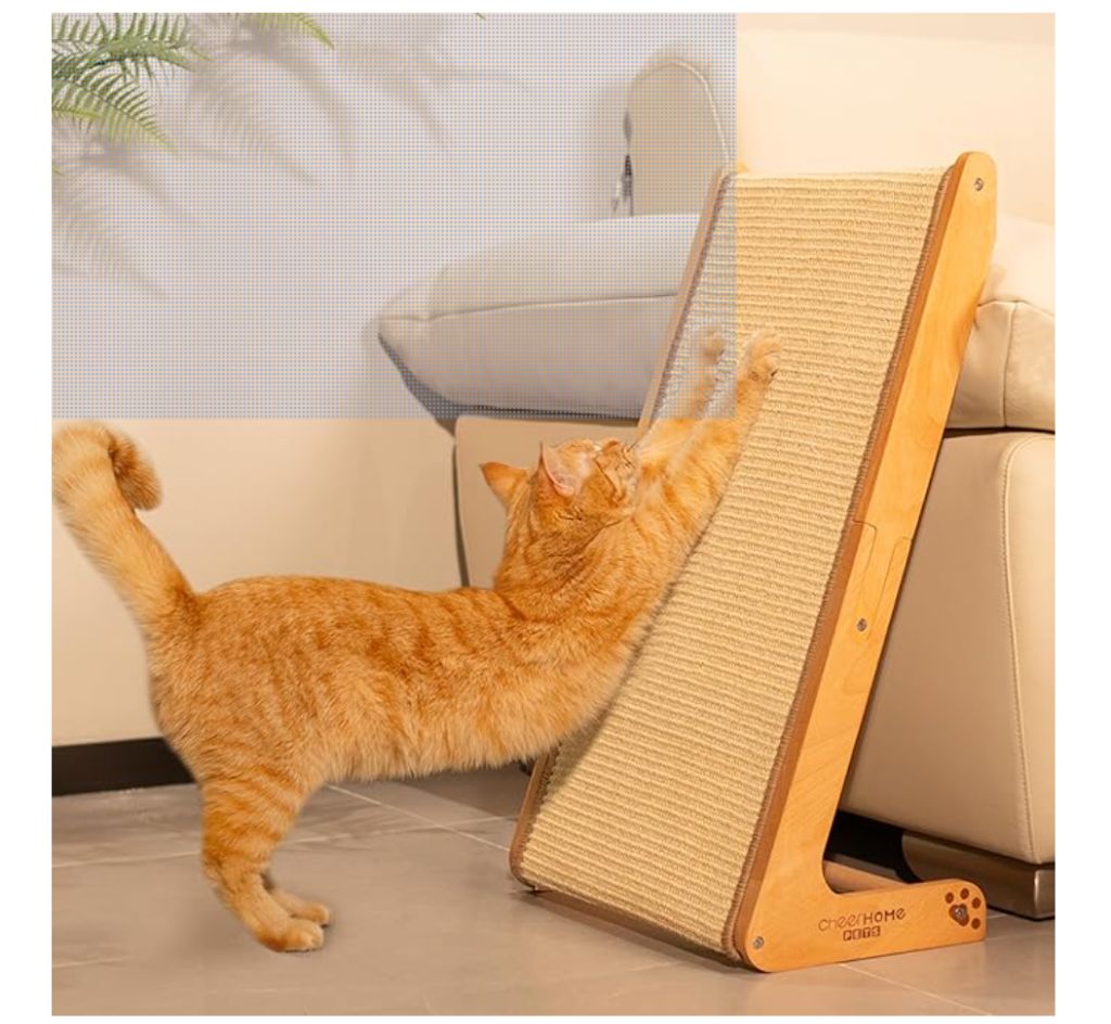 CHEERHOME PETS Sisal Cat Scratcher Ramp for Indoor Cats, 24.8″ L Shape Scratching Post Climbing Vertical Cat Scratch Pad, Solid Wooden Cat Furniture(Medium)