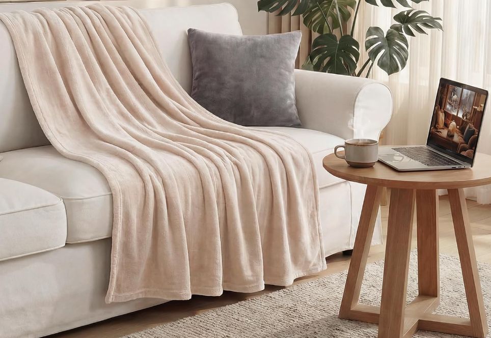 Bedsure Heated Blanket Throw Blanket – Soft Flannel Electric Blanket, Fasting Heating with 4 Time Settings & 6 Heat Settings, Warm Gift for Grandma (50×60 inches, cream)