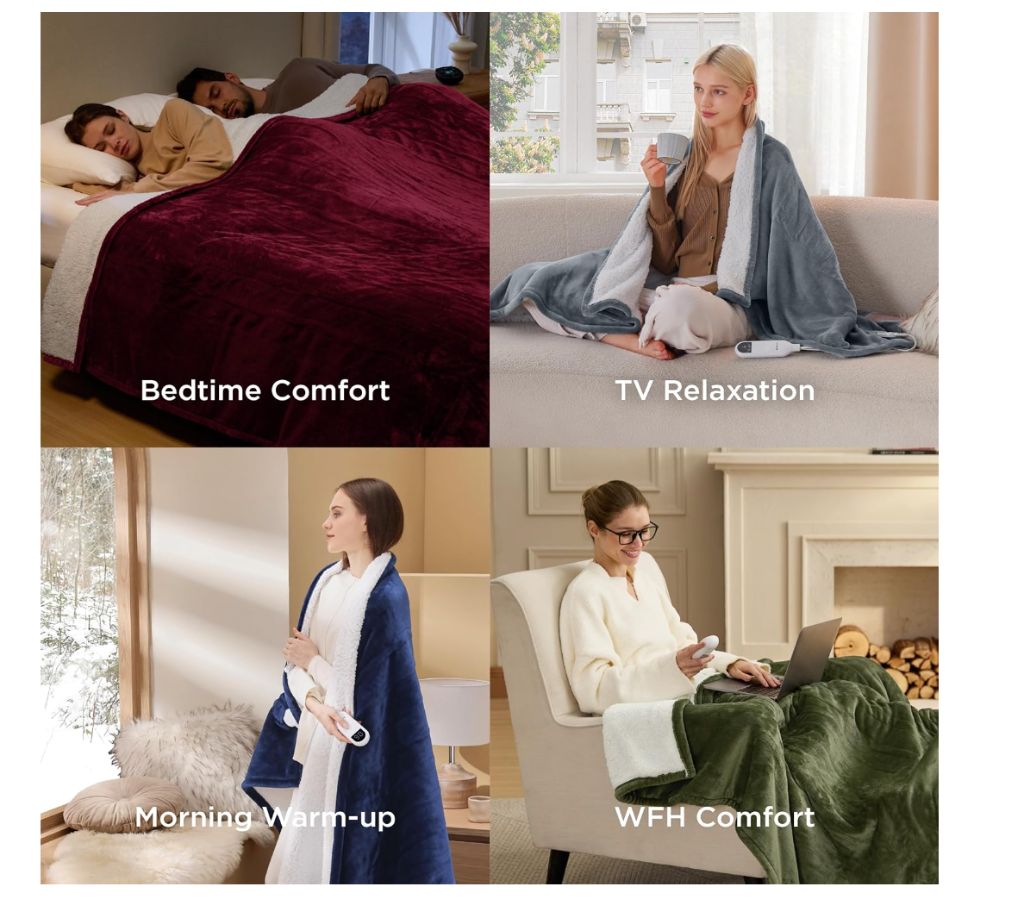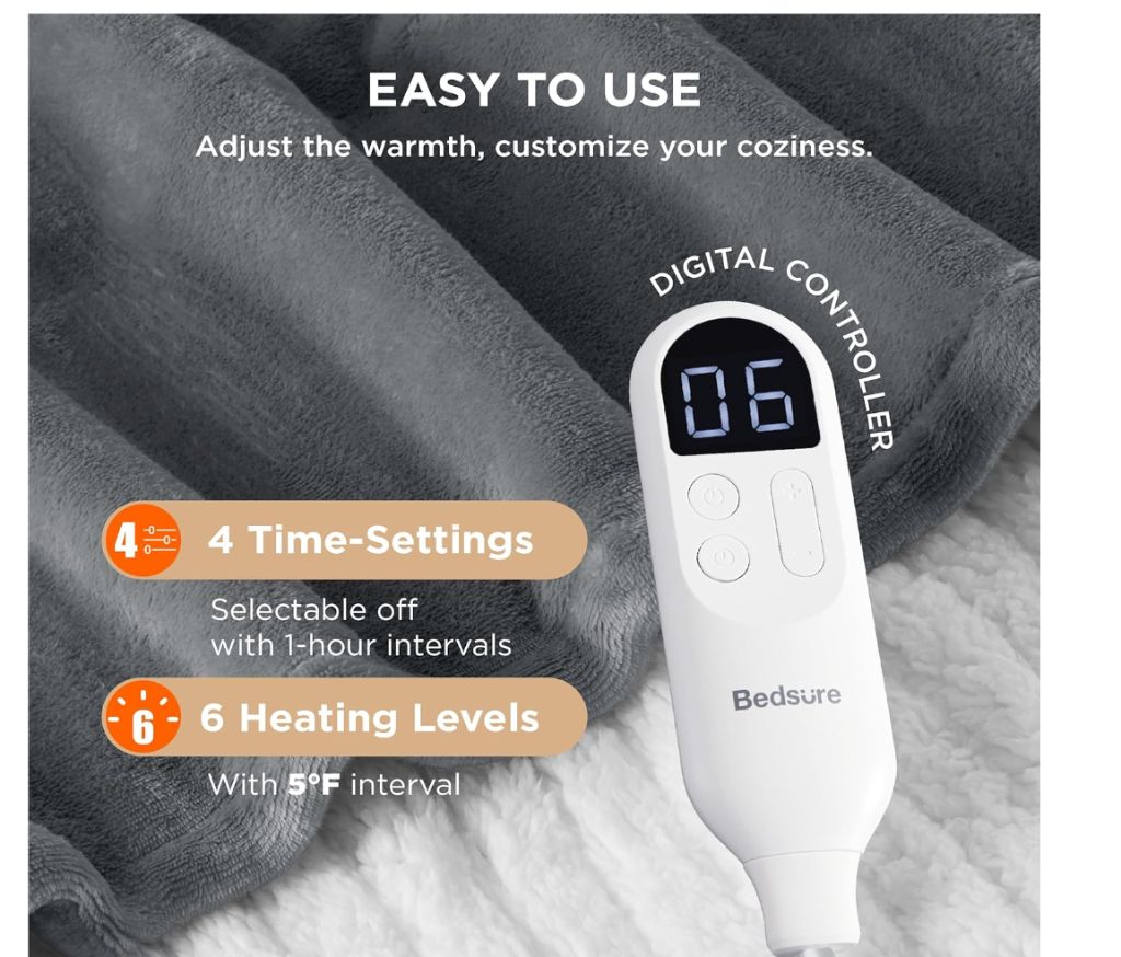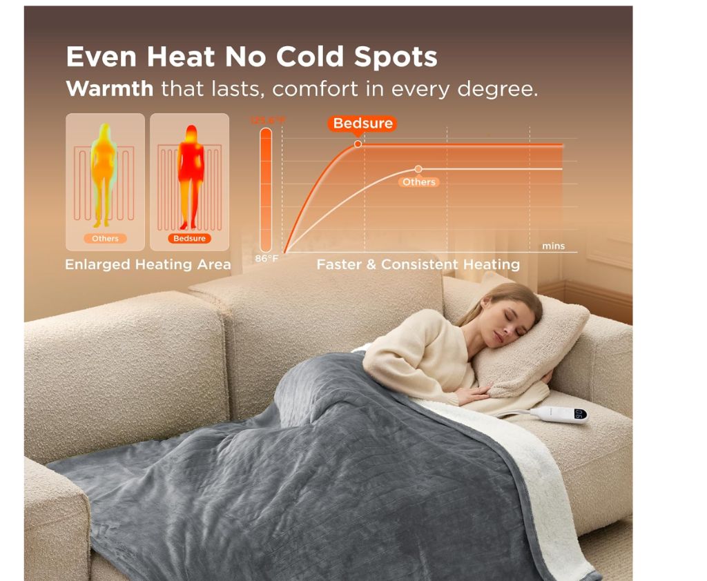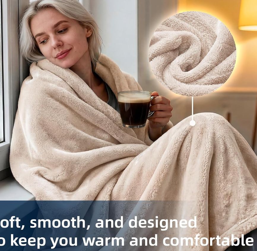 Electric Heated Blanket 50″x60″ – creamBedsure Heated Blanket Throw Blanket – Soft Flannel Electric Blanket, Fasting Heating with 4 Time Settings & 6 Heat Settings, Warm Gift for Grandma (50×60 inches, cream)