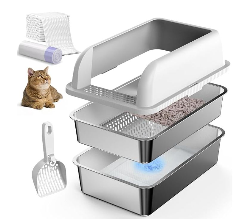 23.6”x16”x12” Enclosed Stainless Steel Litter Box with Lid, XL Sifting Cat Litter Box for Pine […]