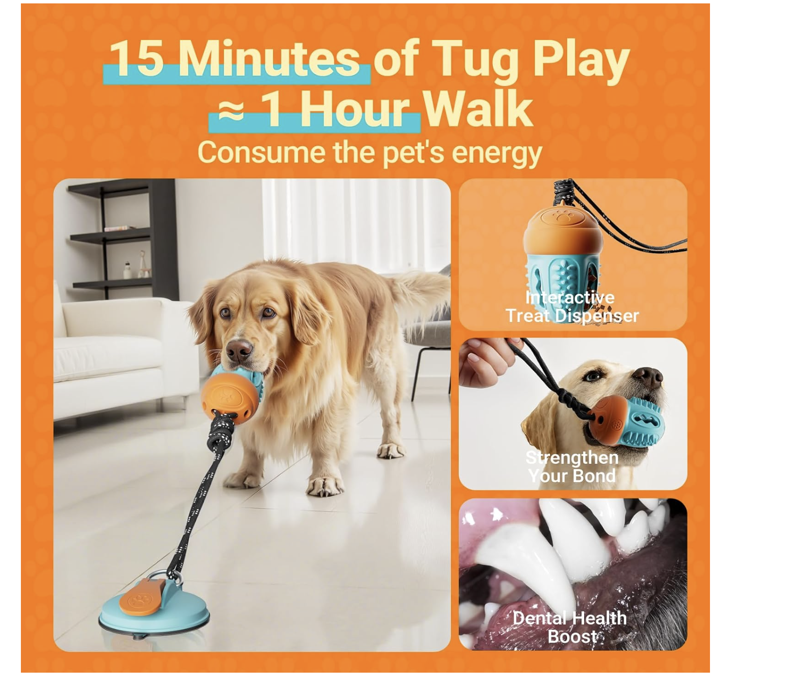 Interactive Dog Toys – Suction Cup Tug of War Dog Toy, Squeaky Enrichment Toys to Keep Dogs Busy with Treat Dispenser, Dog Puzzle Toy for Large Breed Dogs