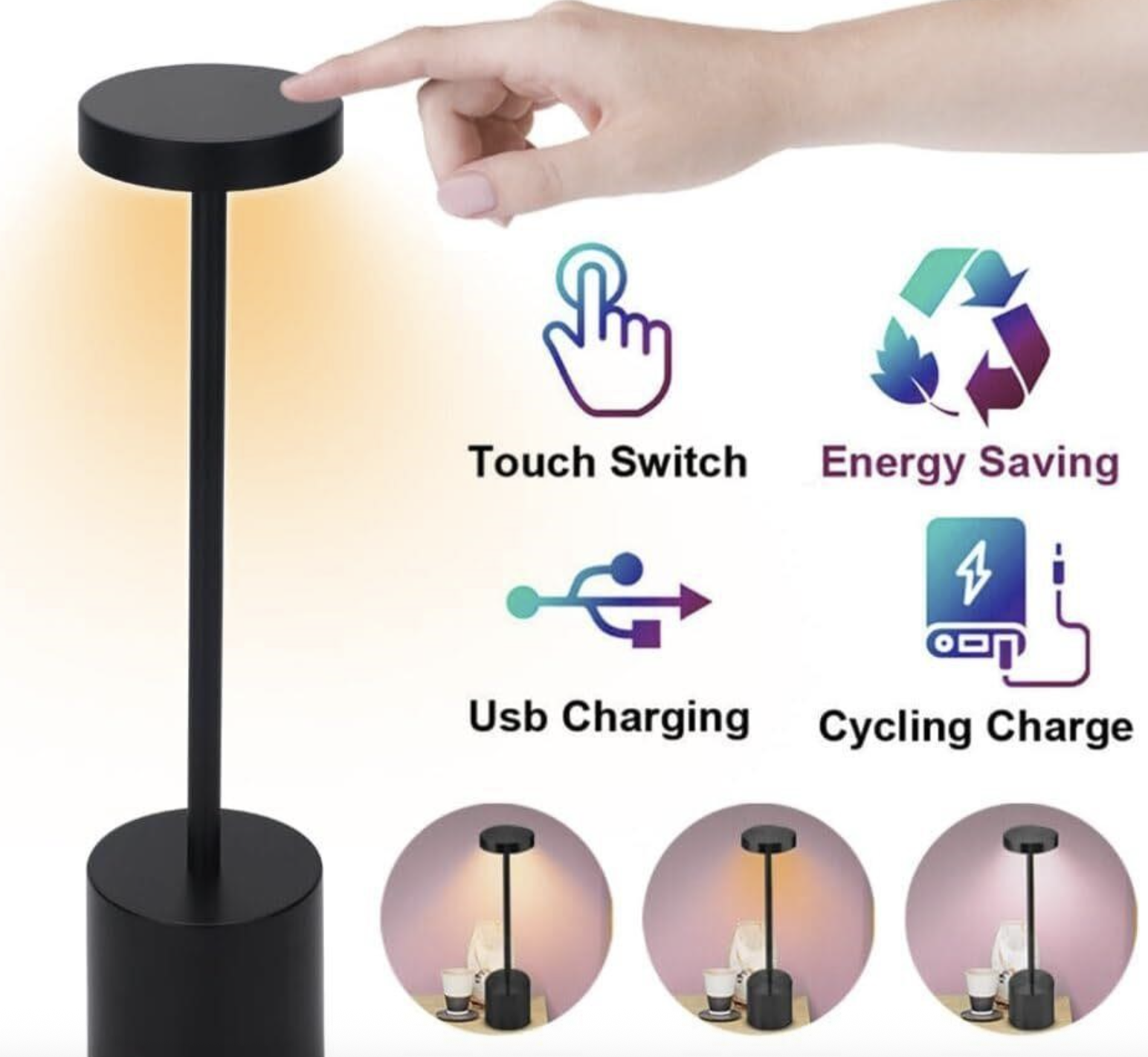 Dimmable Metal Table Light for Restaurant, Outdoor, Bedroom,Coffee Bars Table,Home (Black)