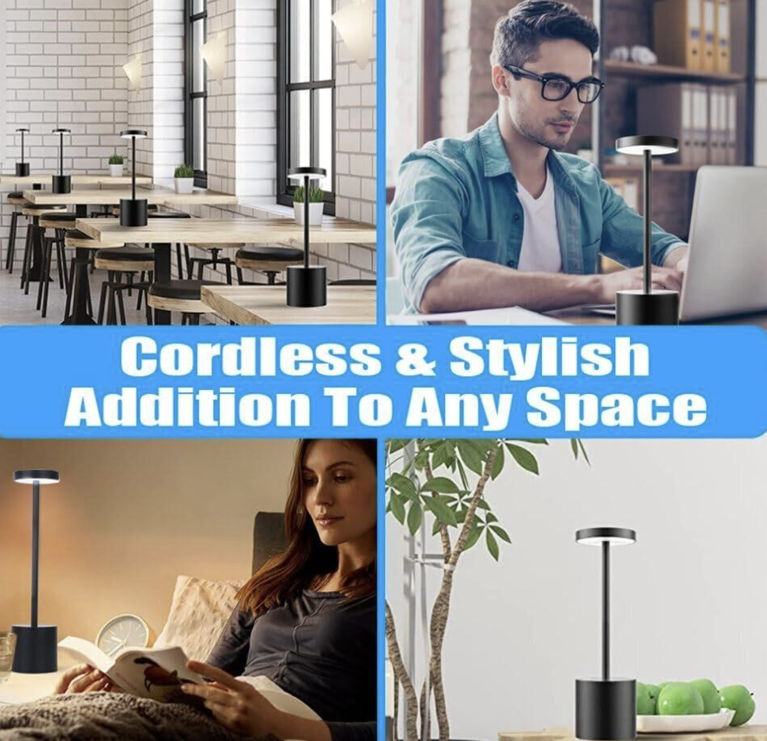 NEW in box MIOBLUE Cordless LED Table Lamp,5000mAh Rechargeable Battery Powered Desk Lamp,3 Lighting Modes, Dimmable Metal Table Light for Restaurant, Outdoor, Bedroom,Coffee Bars Table,Home (Black)