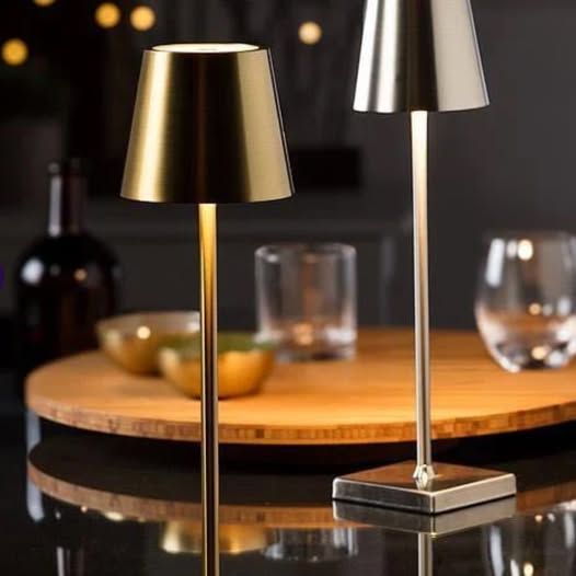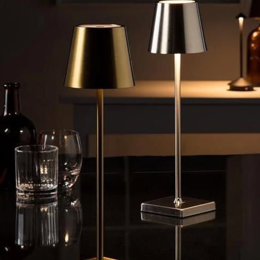 Table light metal silver 15″LED cordless- new in box