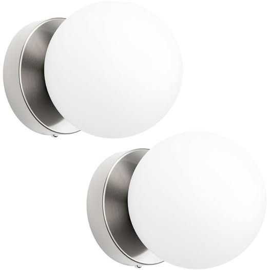 Aoceley Globe Wall Sconces Set of Two Brushed Nickel Sconces Mid Century Wall Light Globe Glass Nickel Vintage Wall Light for Bathroom Bedroom Hallway
