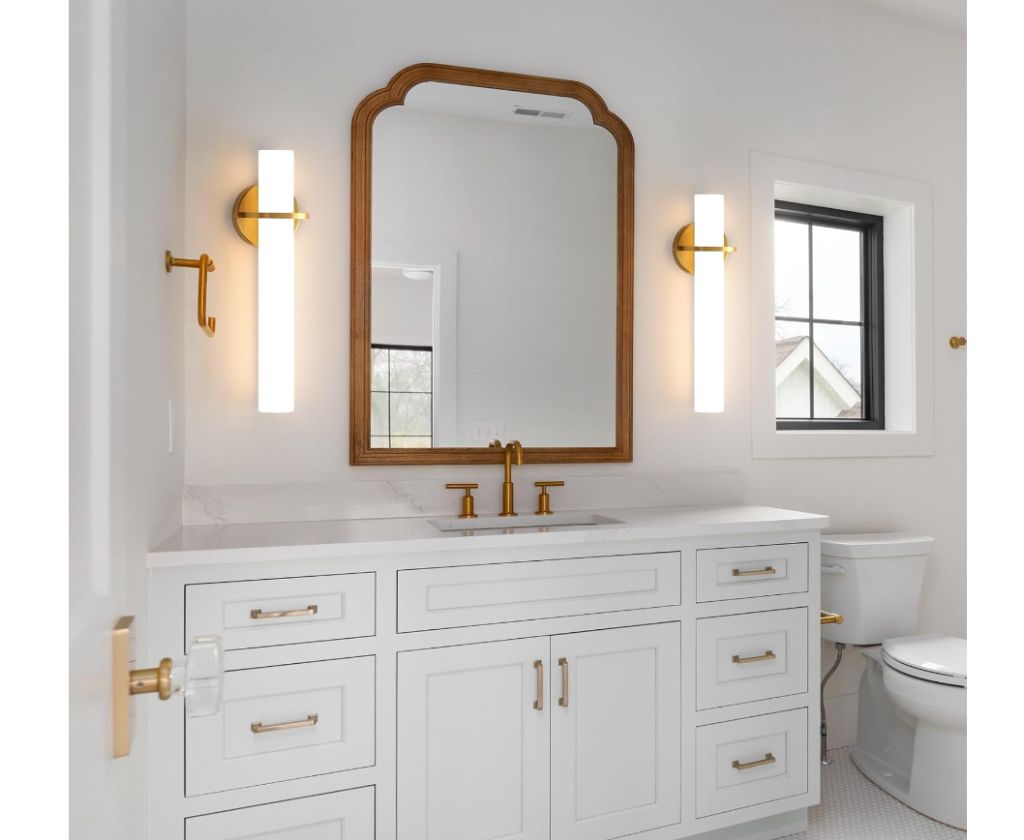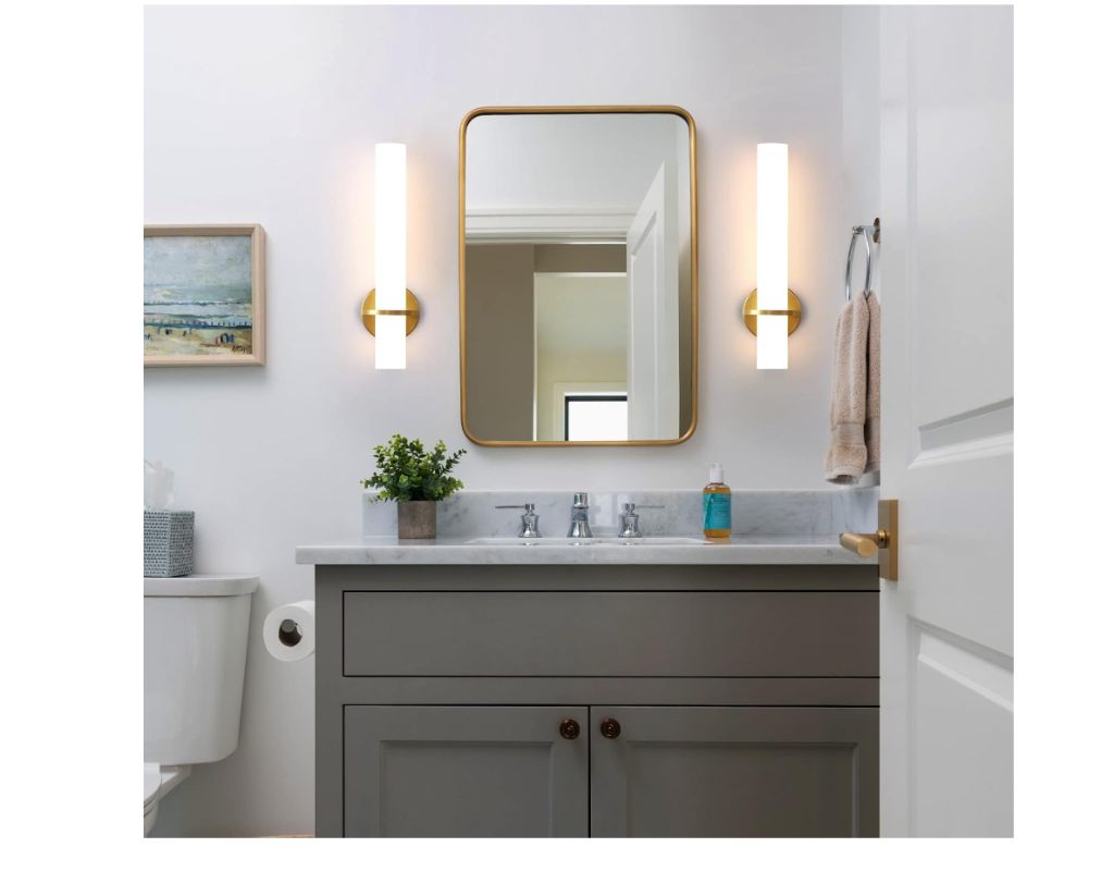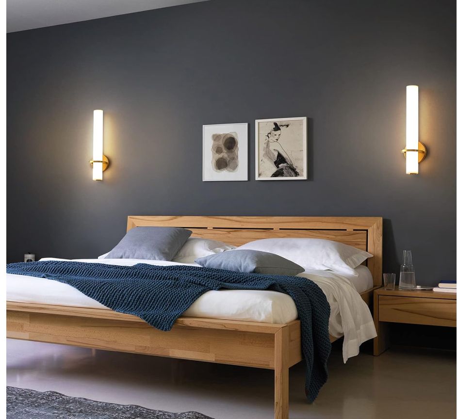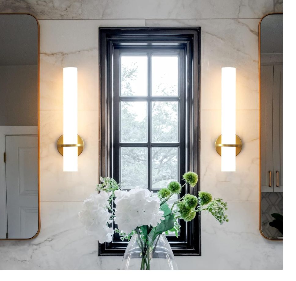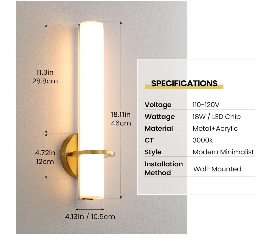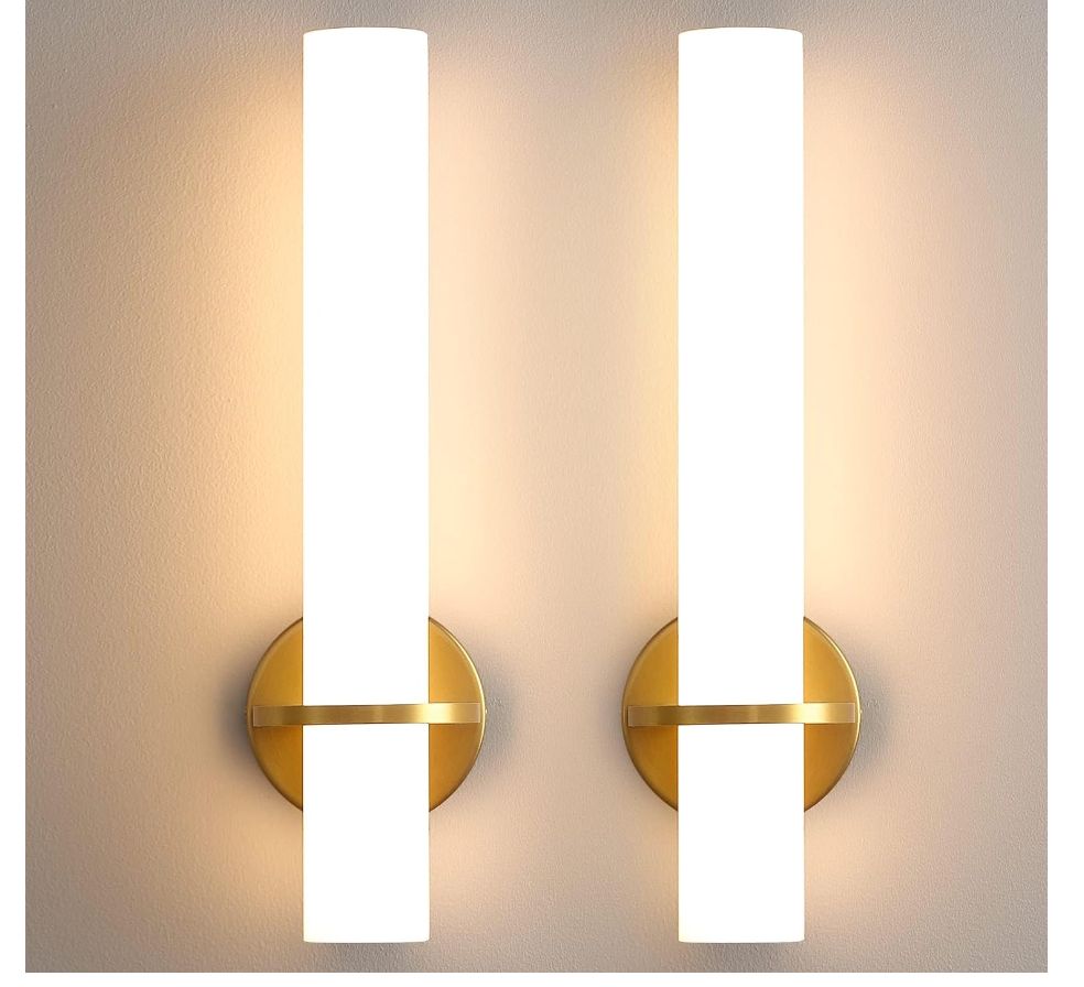 New in boxGold Wall Sconces Set of Two – 18 inch Dimmable Modern Sconces Wall Lighting 18W 3000K LED Wall Lights Acrylic Lampshade Hardwired Wall Light Fixtures for Living Room Bedroom Bathroom Hallway