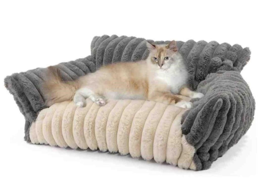 BUMUBI Washable Cat Bed Pet Chair – Cute Fluffy Supportive Cat Sofa for Indoor Kitten – Small Dog Bed with Comfortable Cushion Grey Cream | Condition: New | Length: 35cm | Width: 24cm | Height: 7cm