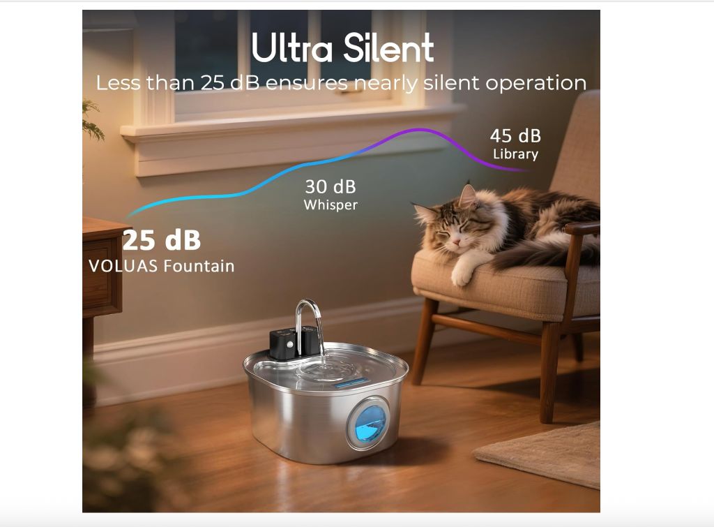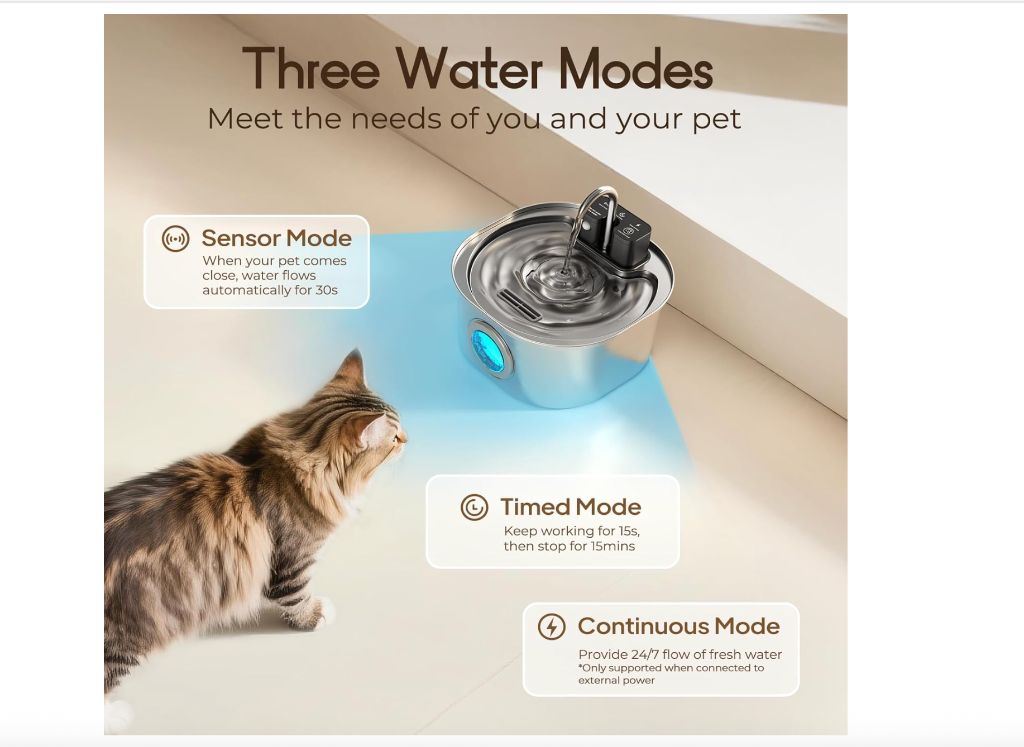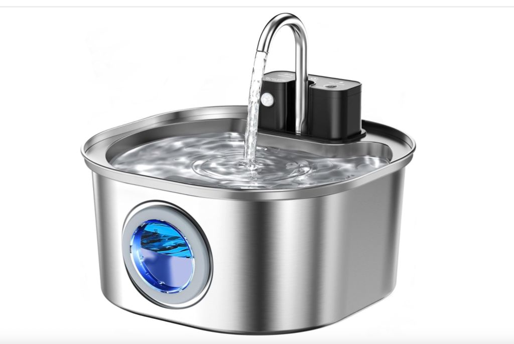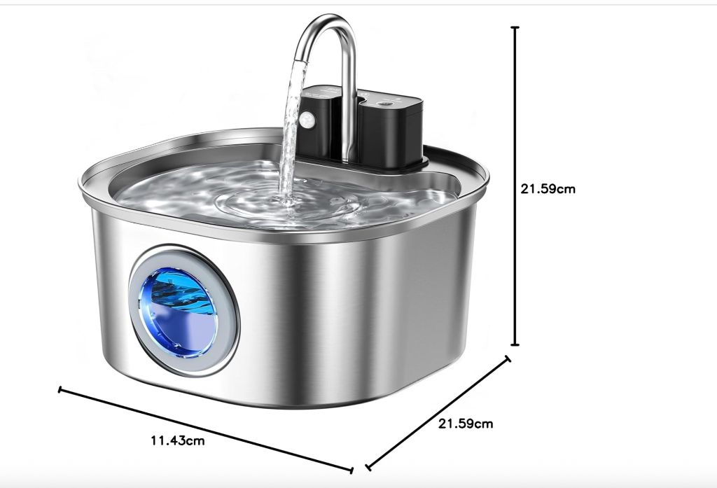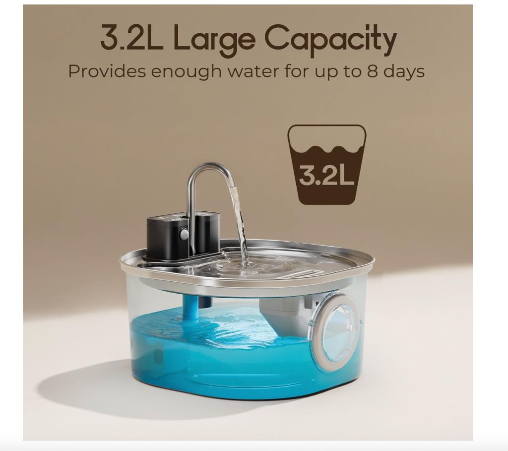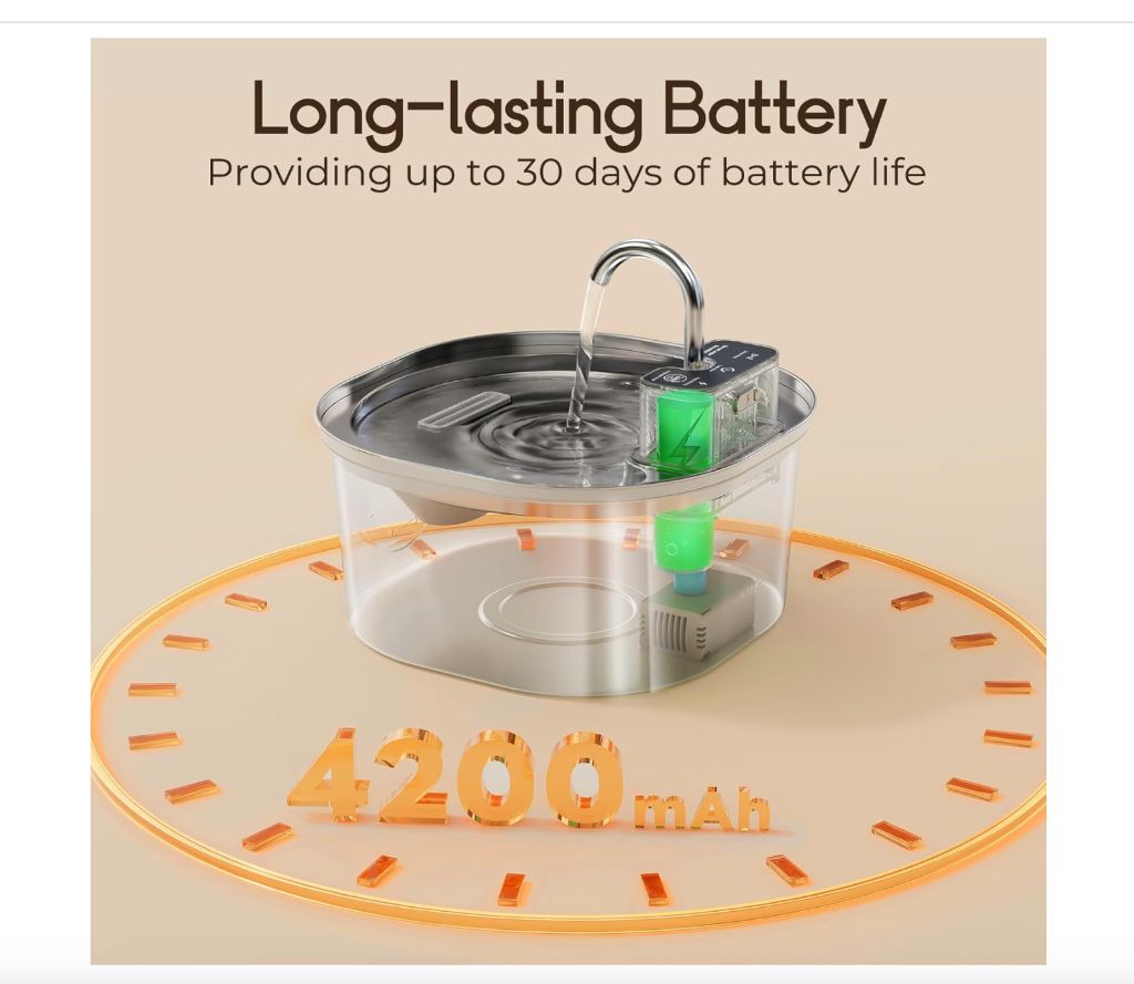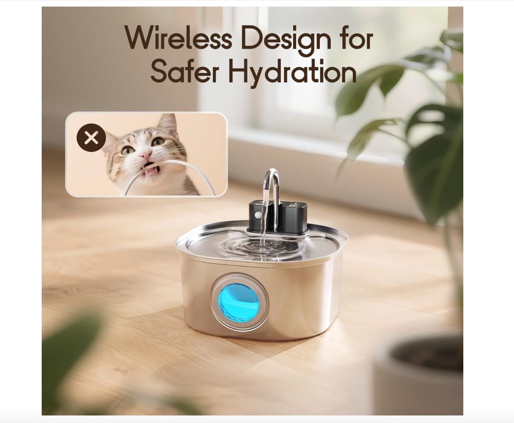 Stainless Steel Cat Water Fountain-Wireless Pet Water Fountain Battery Operated,108oz/3.2L, Automatic Water Dispenser for Dogs with Quiet Pump,